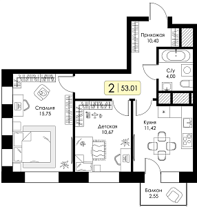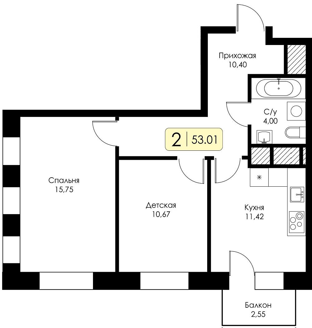 Двухкомнатная квартира №23 с чистовой отделкой, Корпус 5, Секция 1
