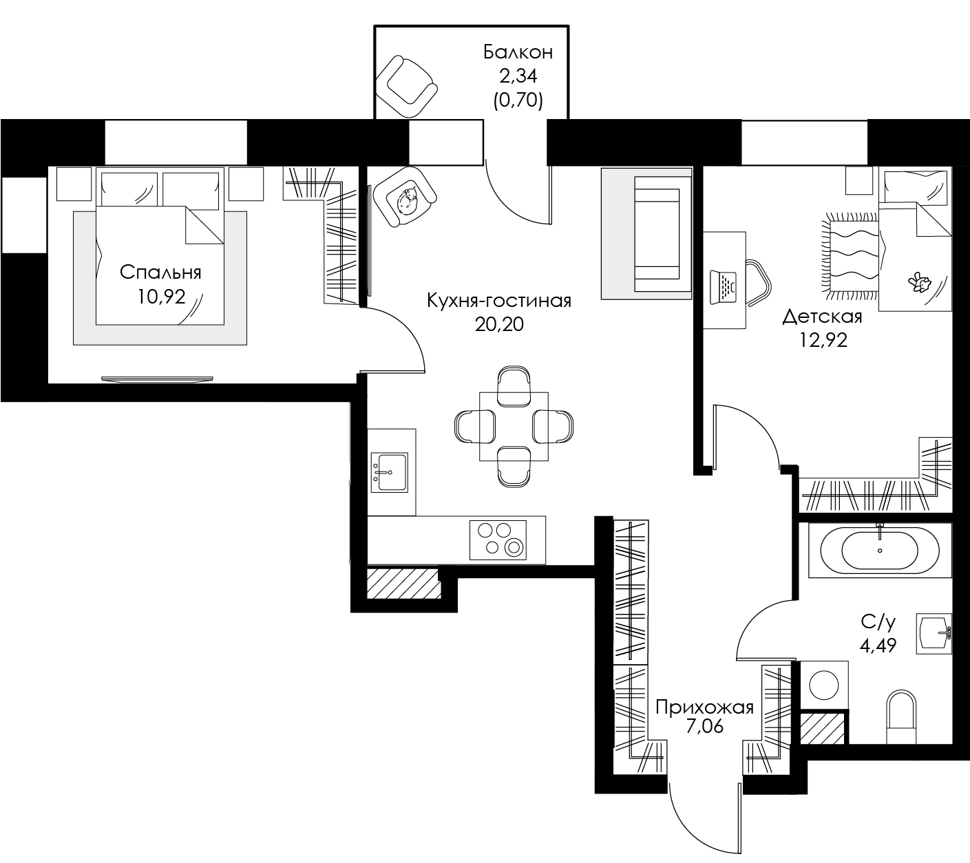 Двухкомнатная квартира №51 с чистовой отделкой, Корпус 2, Секция 1