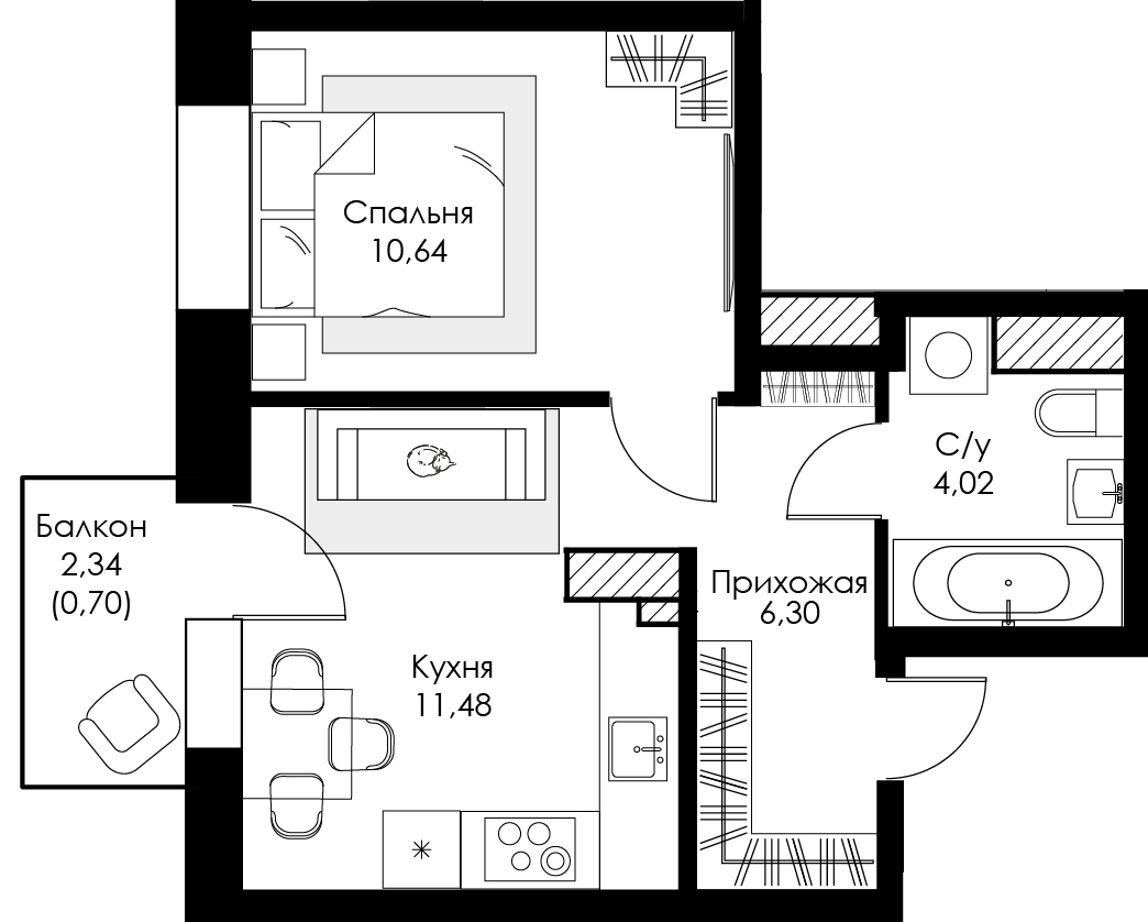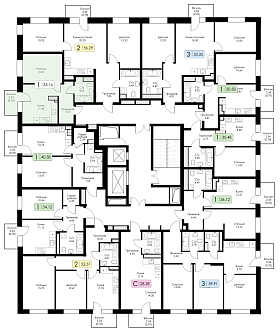 Однокомнатная квартира №17 с предчистовой отделкой, Корпус 2, Секция 1