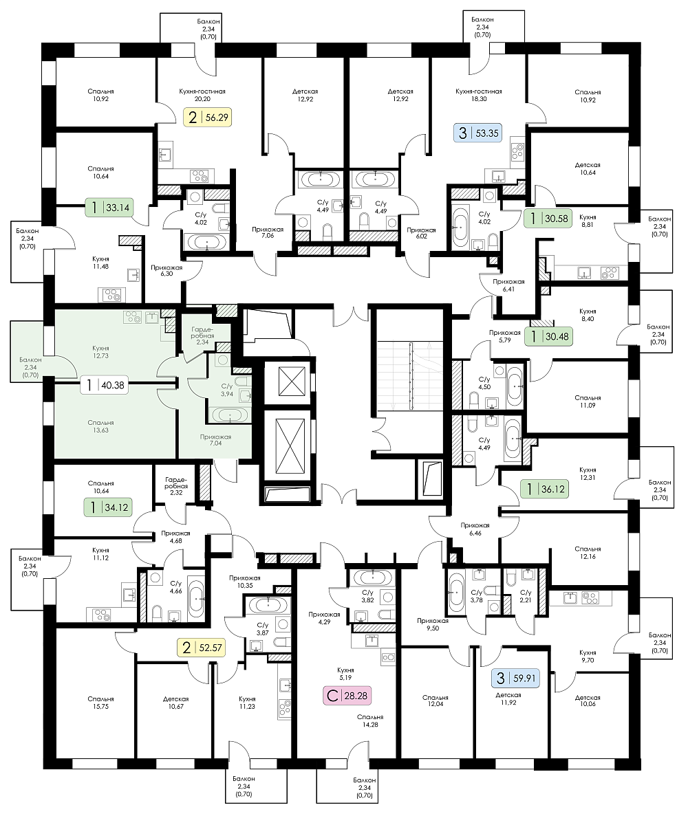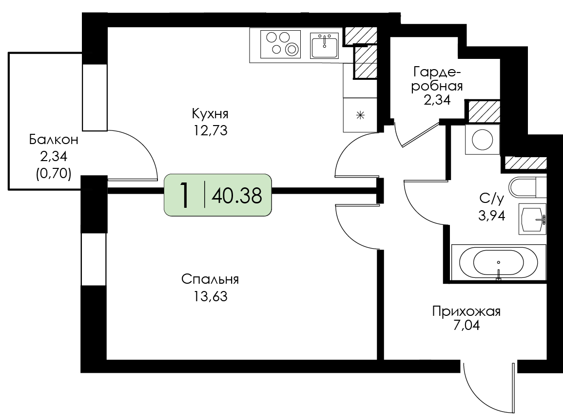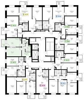 Однокомнатная квартира №27 с предчистовой отделкой, Корпус 2, Секция 1