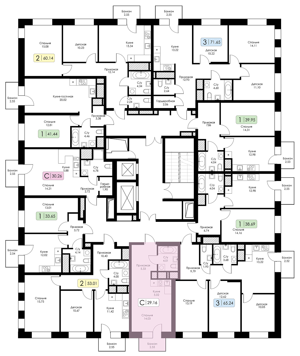 Квартира-студия №152 с предчистовой отделкой, Корпус 1, Секция 1