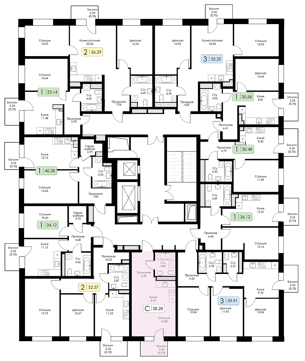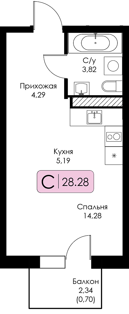 Квартира-студия №57 с чистовой отделкой, Корпус 2, Секция 1