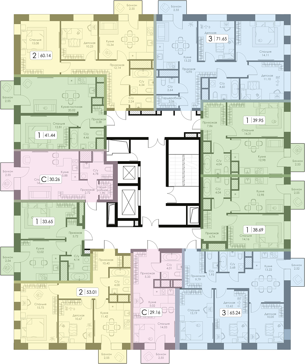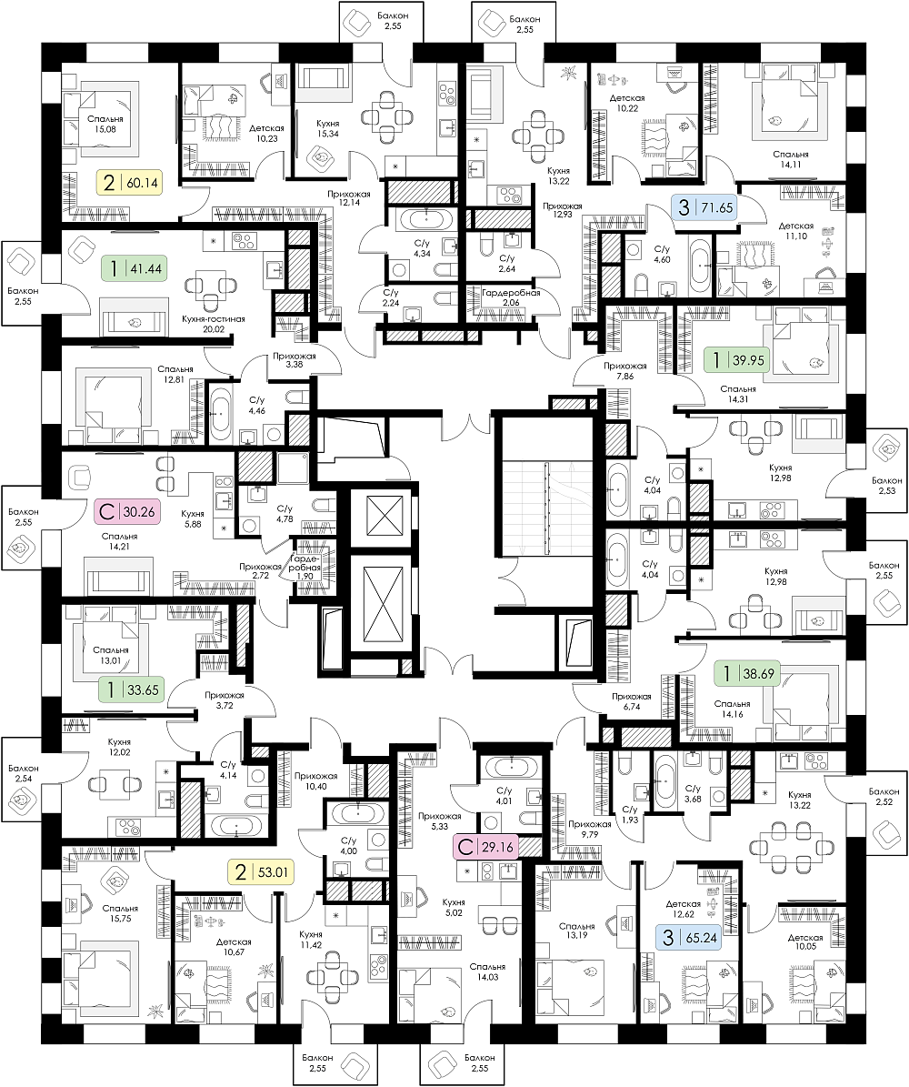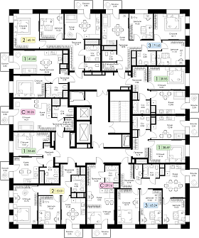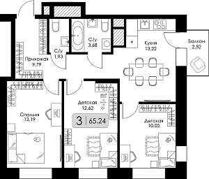 Трехкомнатная квартира №91 с чистовой отделкой, Корпус 1, Секция 1