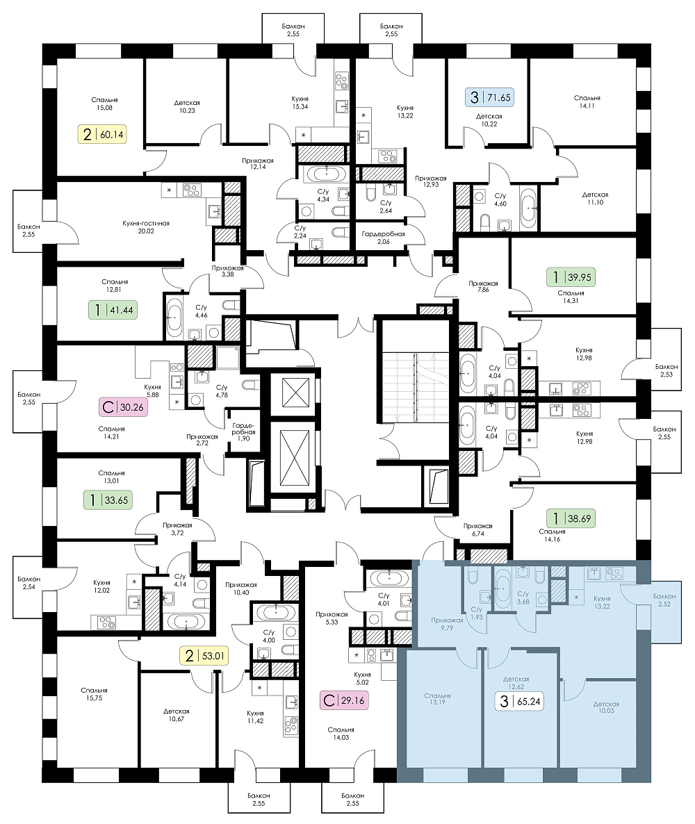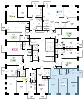 Трехкомнатная квартира №151 с предчистовой отделкой, Корпус 1, Секция 1