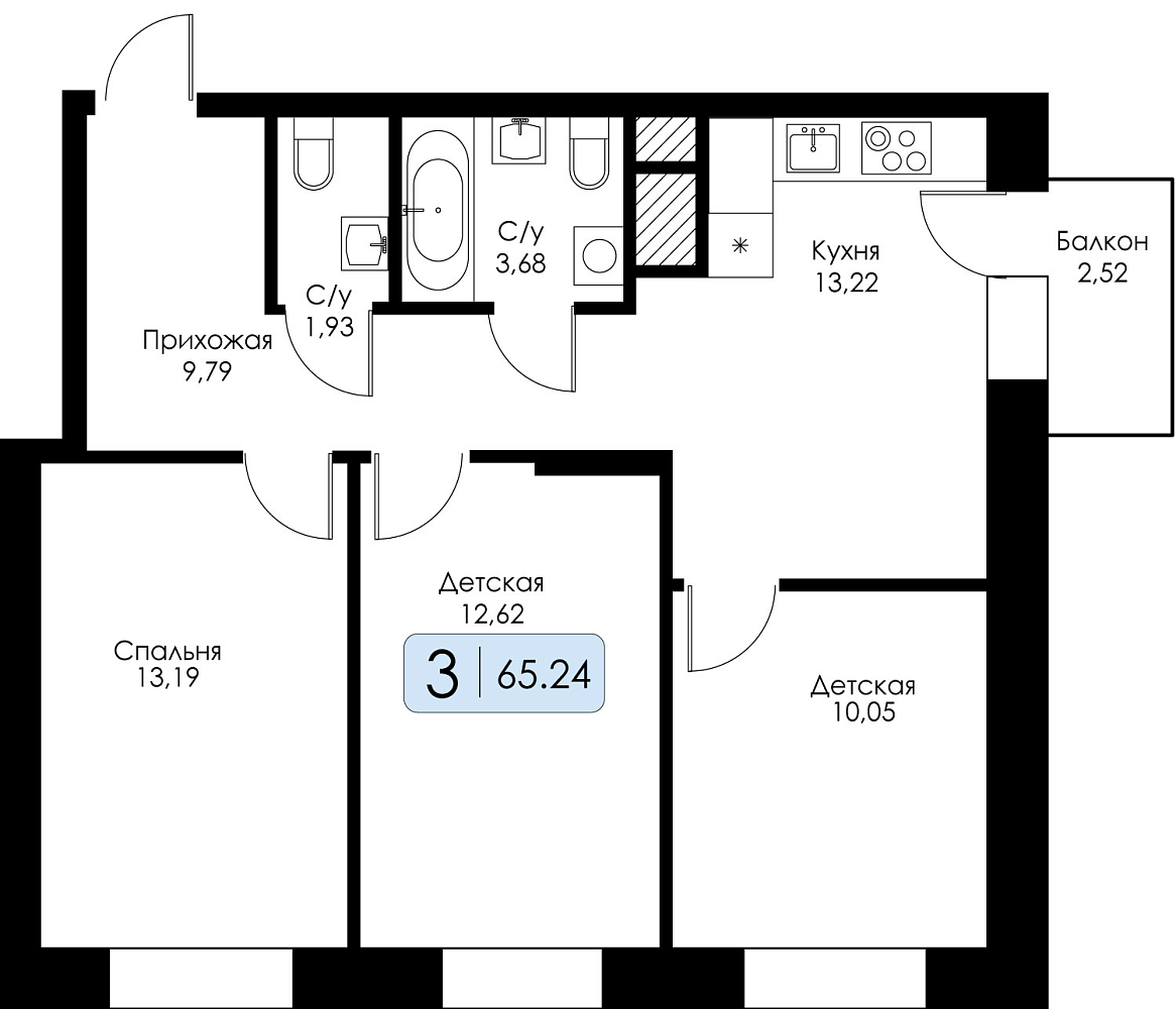 Трехкомнатная квартира №121 с предчистовой отделкой, Корпус 5, Секция 1
