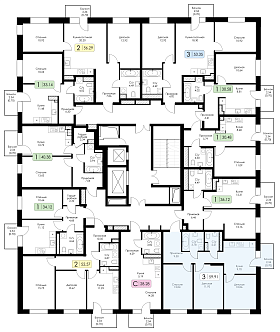 Трехкомнатная квартира №56 с чистовой отделкой, Корпус 2, Секция 1