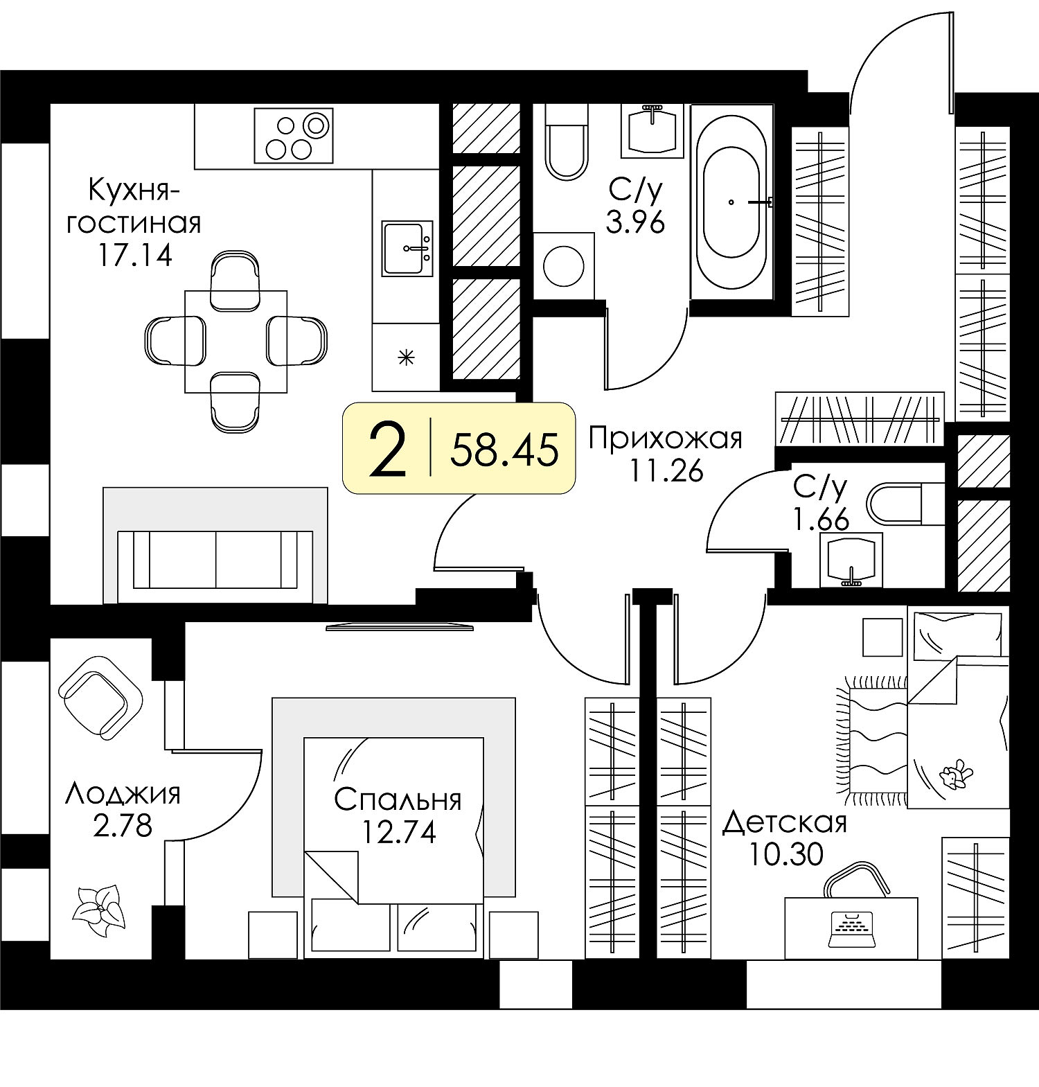 58.45м2