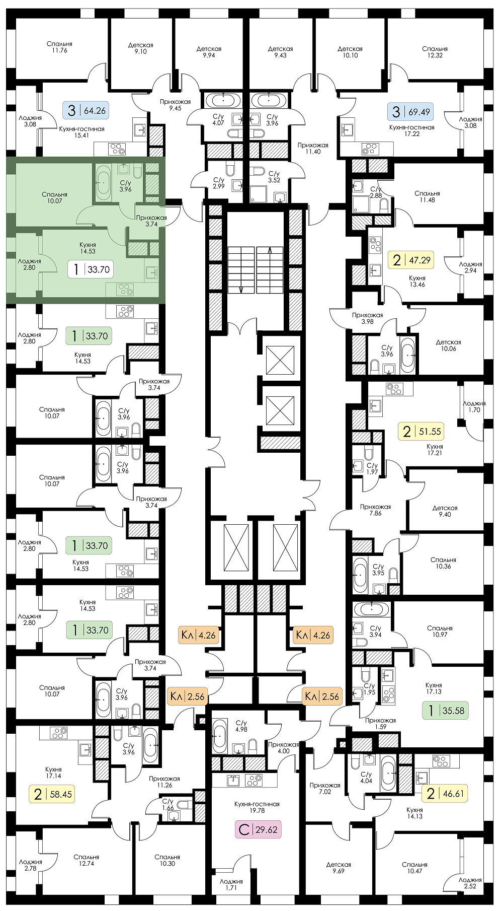 Однокомнатная квартира №143, Корпус 1, Секция 1