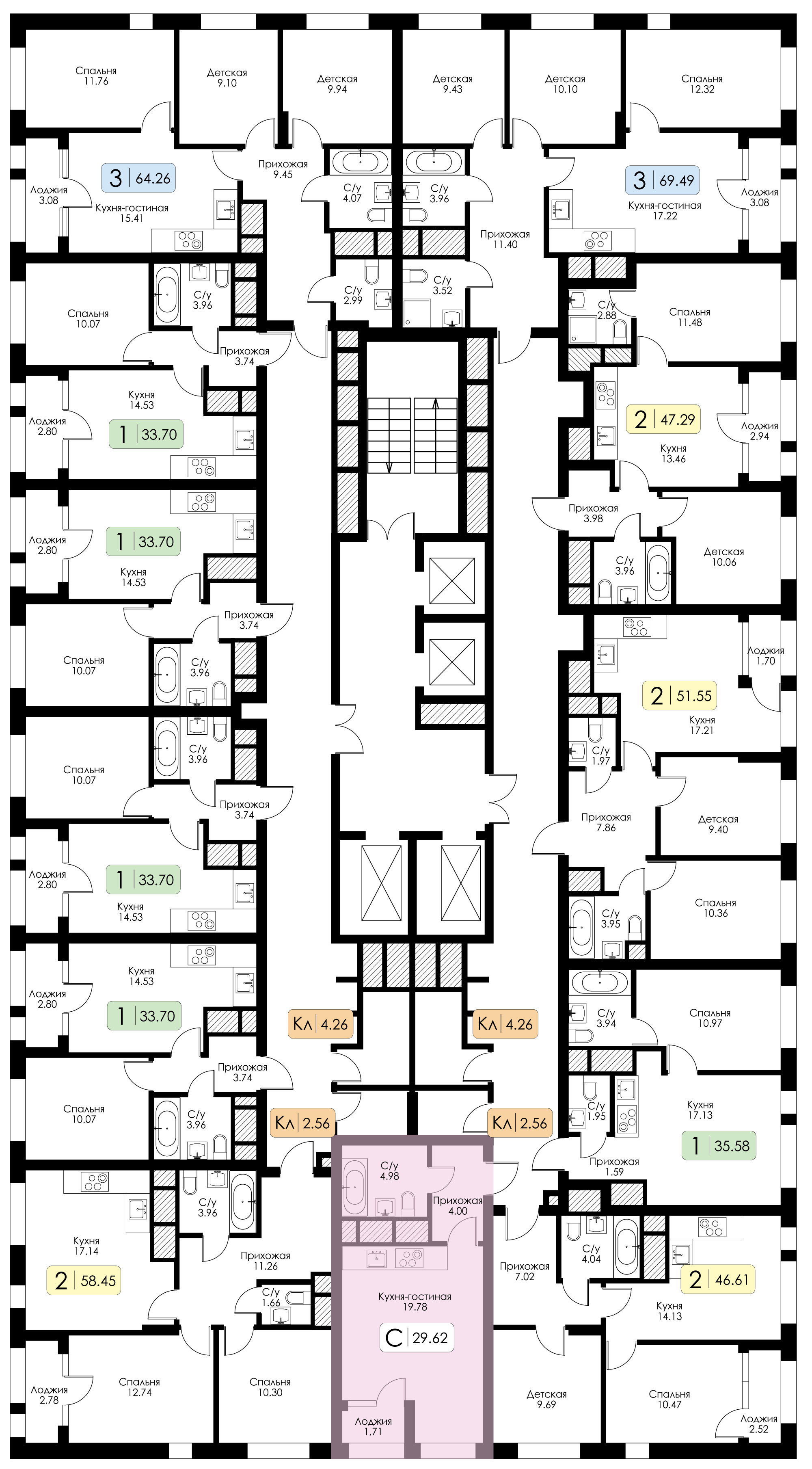 Квартира-студия №234, Корпус 1, Секция 1