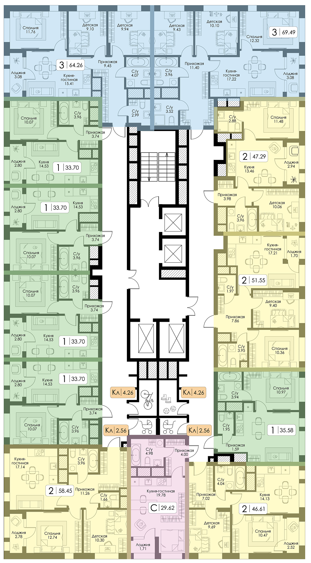 Квартира-студия №258, Корпус 1, Секция 1