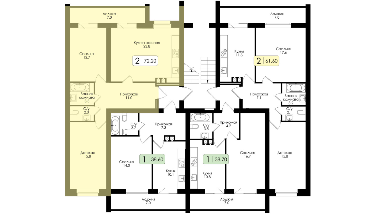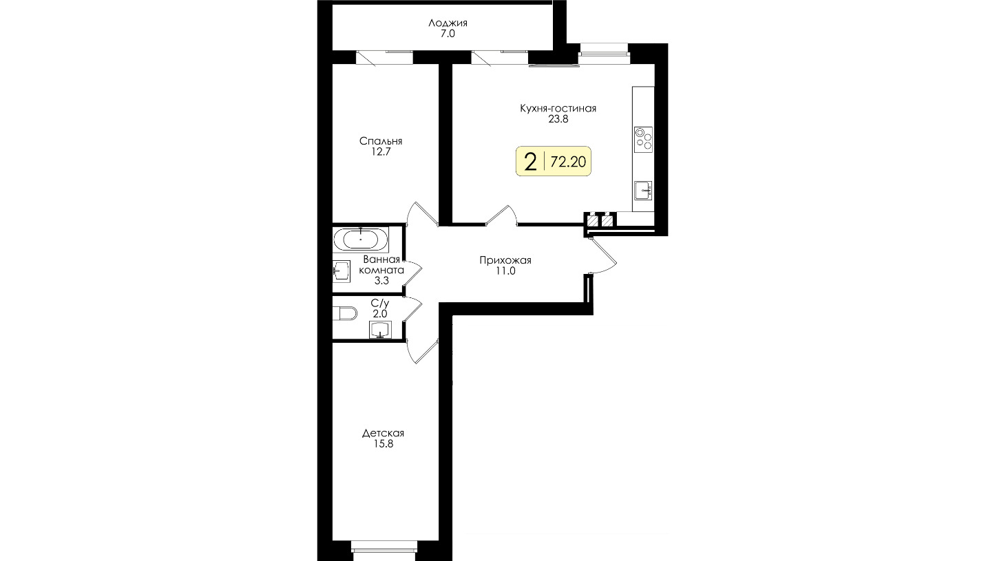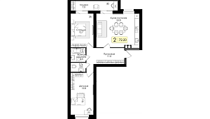 Двухкомнатная квартира №48 c черновой отделкой, Корпус Дом №1, Секция 3
