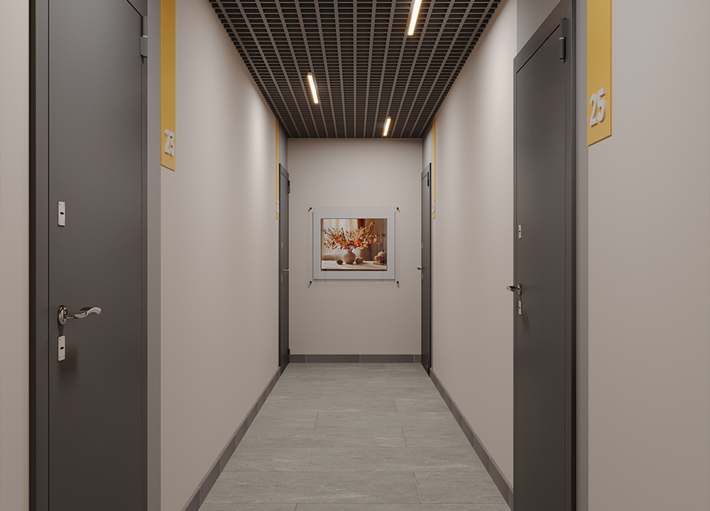 Каждый день Вас будет встречать нарядная современная входная группа, с высоким потолком, керамогранитным нескользким полом, большим количества света, проникающим сквозь 4х метровые окна 1 этажа, оформление разработано дизайнером специально для жителей ЖК «Среда». Сквозной подъезд позволяет выйти во двор напрямую, не нужно обходить дом, что делает проживание еще более комфортным.