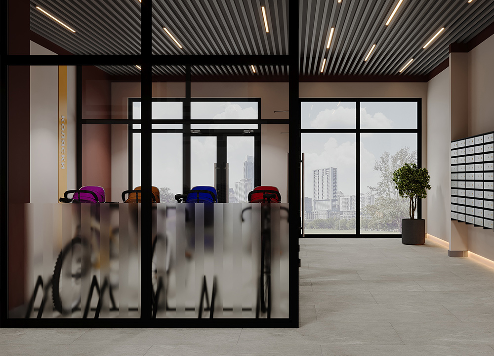 Среда - это дом, продуманный до мелочей: ограниченный доступ в подъезды, освещение, зона хранения колясок и велосипедов на 1 этаже, кладовые на -1 этаже, современные бесшумные лифты с кастомизированными кабинами.