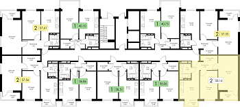 Двухкомнатная квартира №48 c черновой отделкой, Корпус А, Секция 1