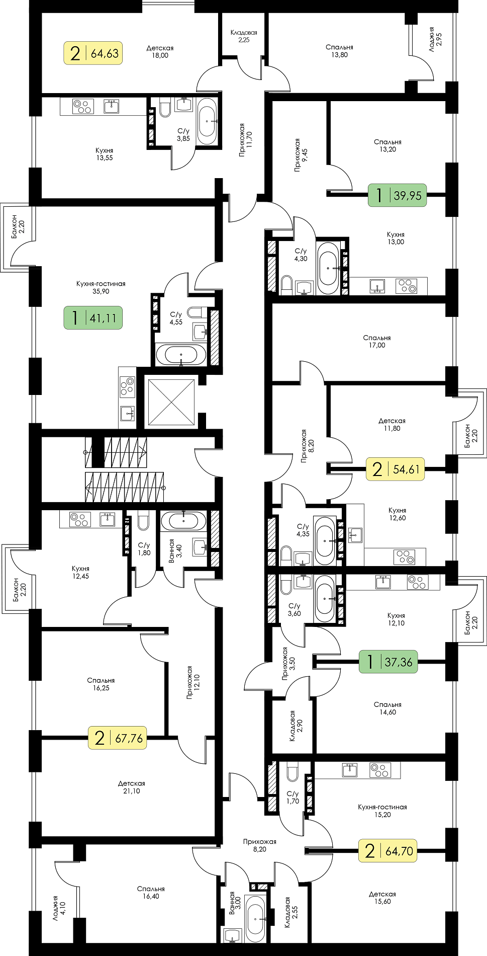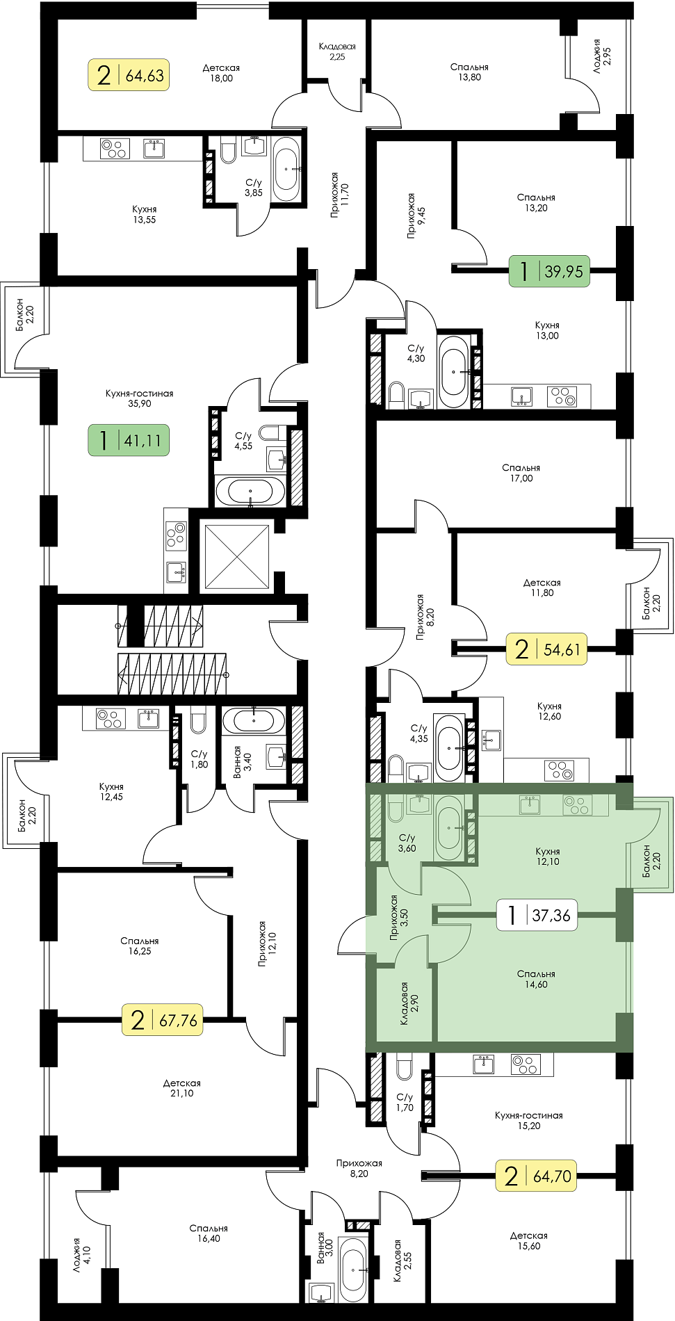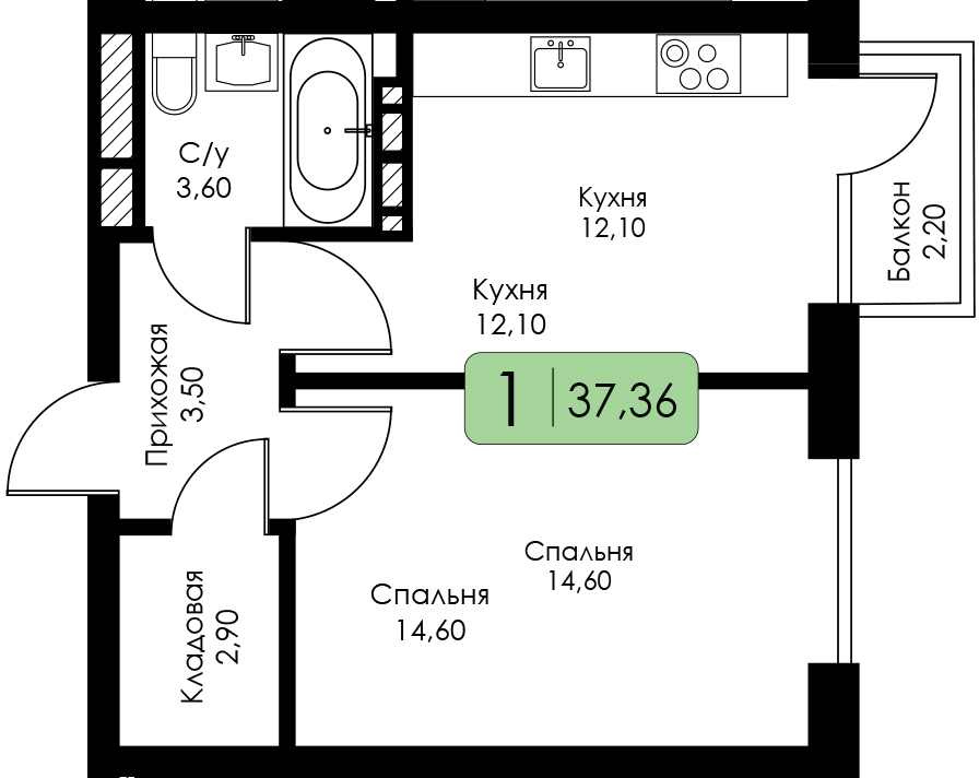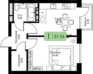 Однокомнатная квартира №120 c черновой отделкой, Корпус А, Секция 2