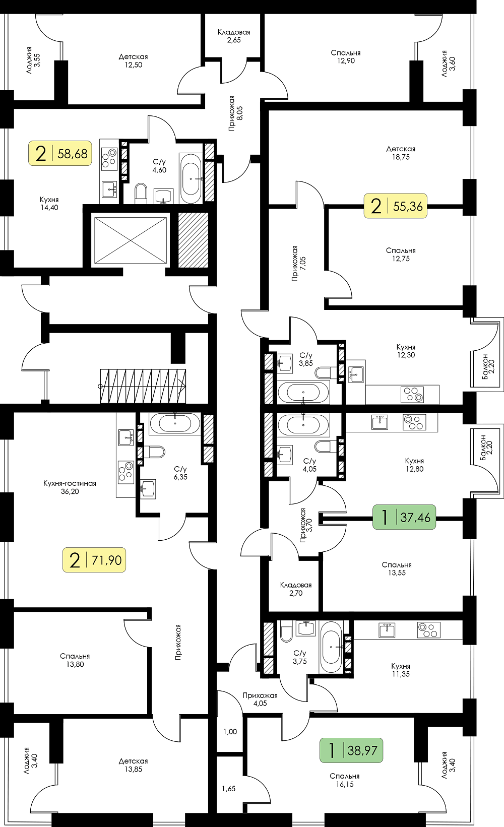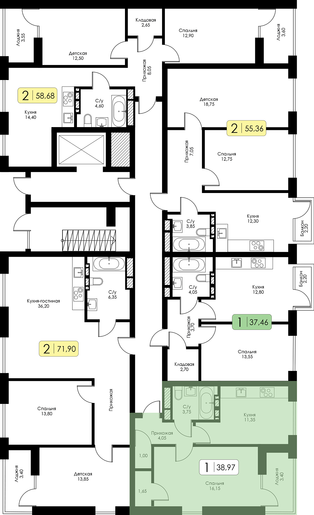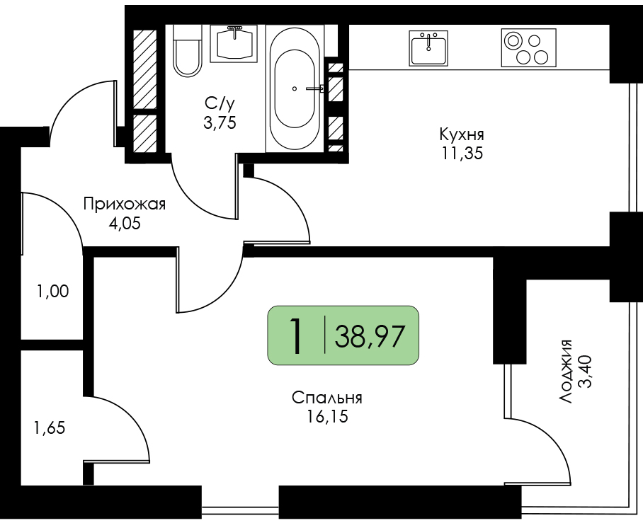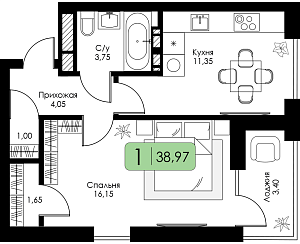 Однокомнатная квартира №150 c черновой отделкой, Корпус А, Секция 3
