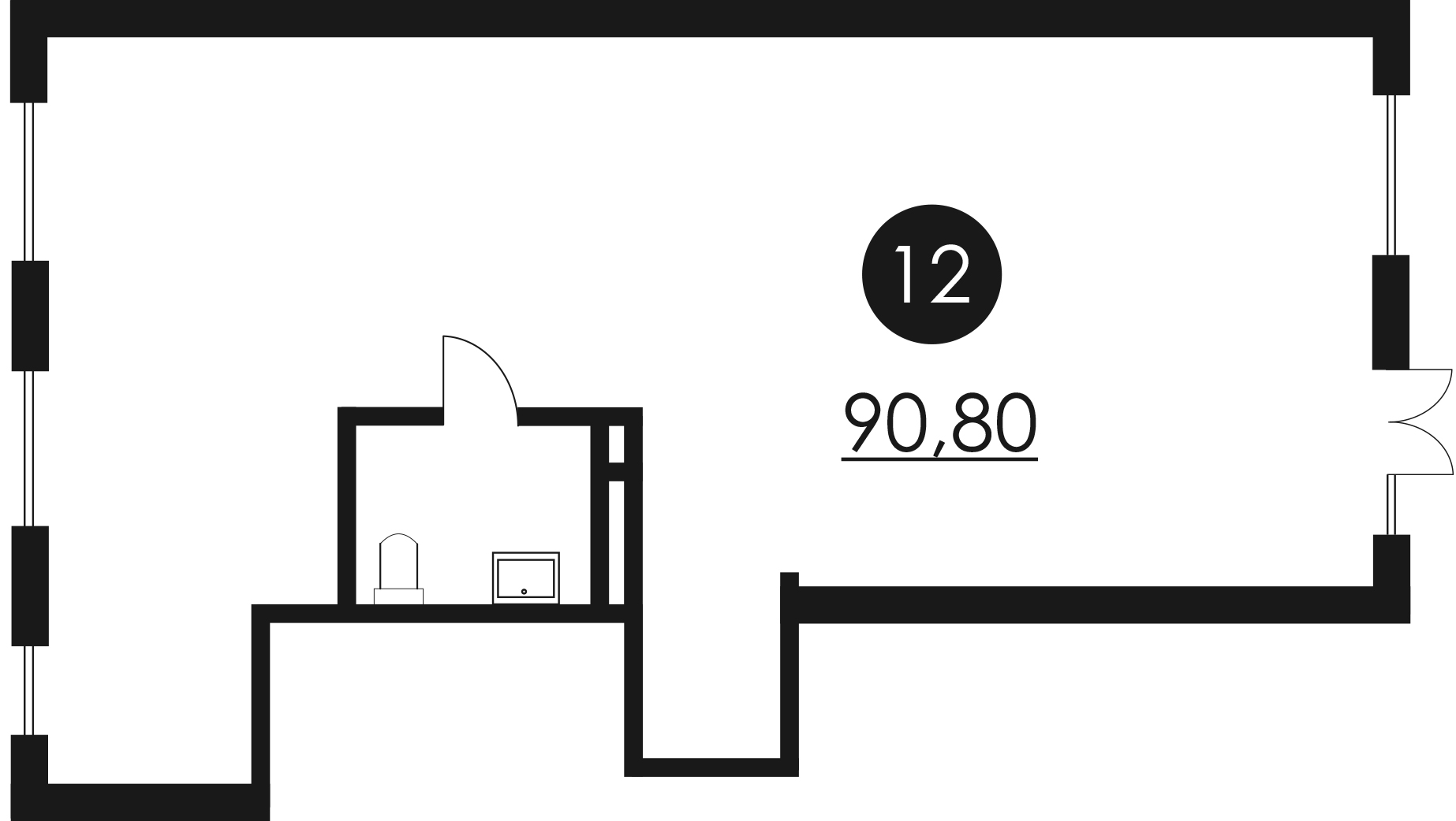 Однокомнатная квартира №12, Корпус Корпус А - нежилые помещения, Секция 3