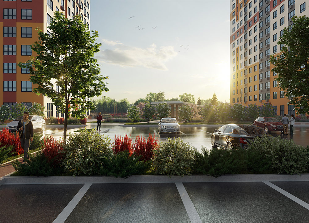 Территория комплекса оборудована для максимального комфорта и безопасности. Видеокамеры и видеодомофоны на входах в подъезды создадут чувство защищённости, а для дополнительной безопасности предусмотрен опорный пункт полиции. Внутренний двор свободен от автомобилей — парковочные места размещены за пределами жилой зоны.