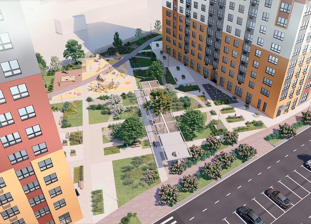 Особое внимание уделено созданию благоприятной среды для отдыха и активного времяпрепровождения. Сквер, засаженный плодовыми деревьями, современные детские площадки и спортивные зоны, включая площадки для воркаута и командных игр, станут прекрасным местом для семейного отдыха и активного времяпрепровождения.