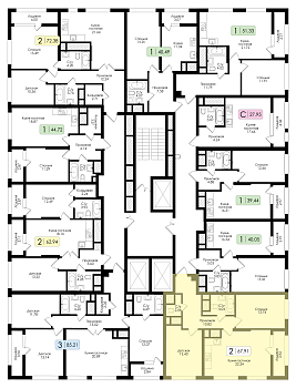 Двухкомнатная квартира №216 с предчистовой отделкой, Корпус 1, Секция 1