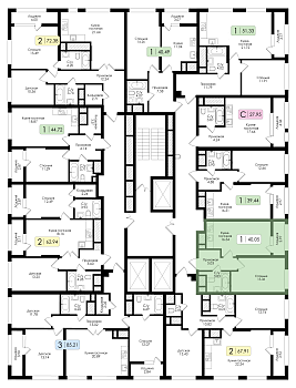 Однокомнатная квартира №215 с предчистовой отделкой, Корпус 1, Секция 1