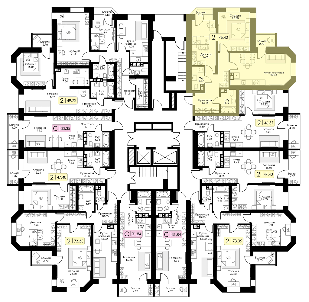 Двухкомнатная квартира №56, Корпус №11, Секция 1