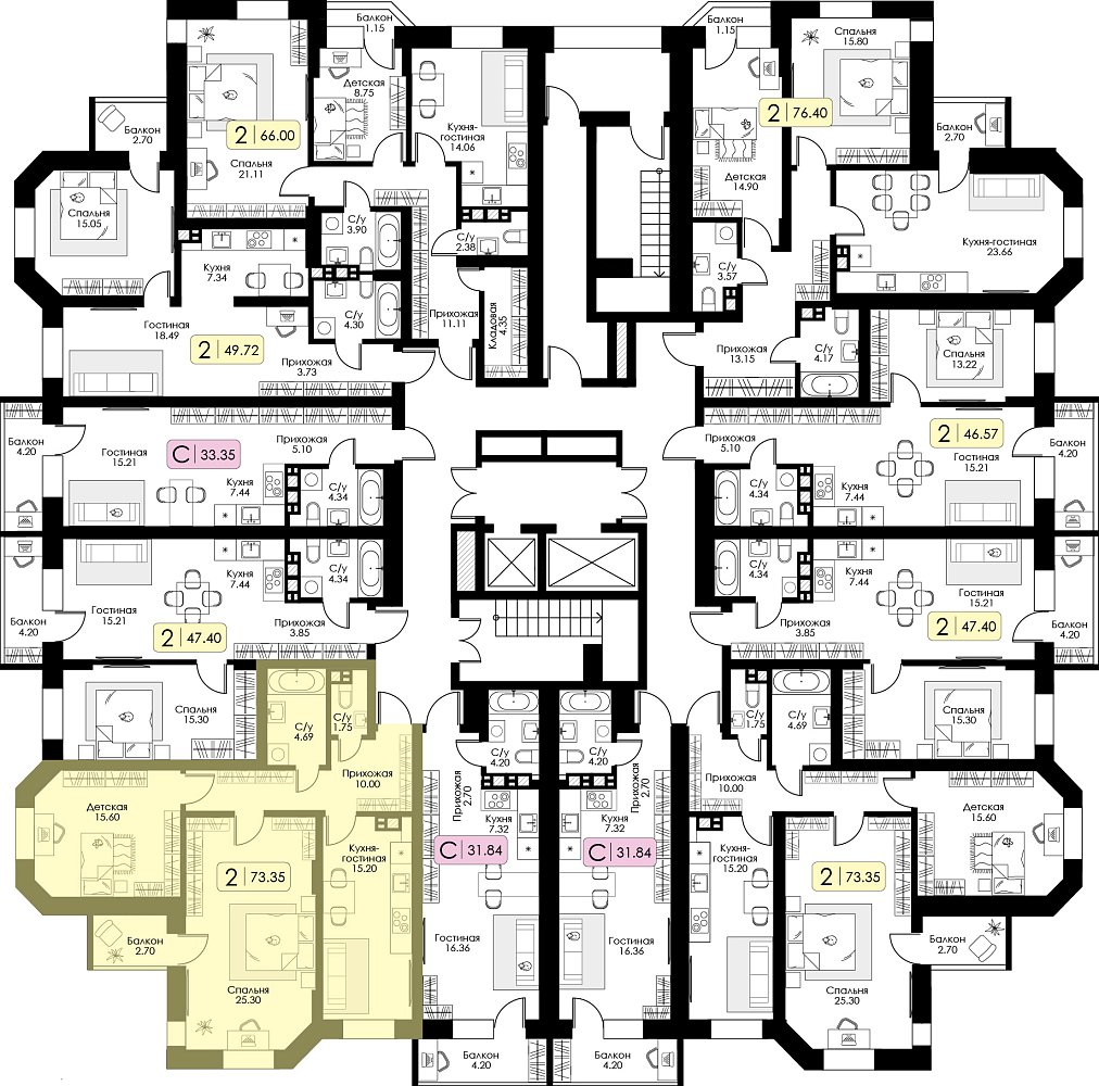 Двухкомнатная квартира №95, Корпус №11, Секция 1