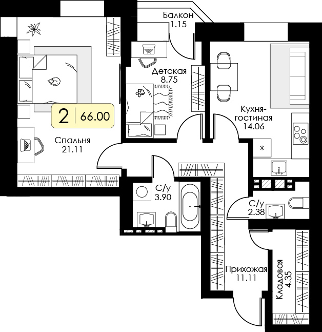 66м2
