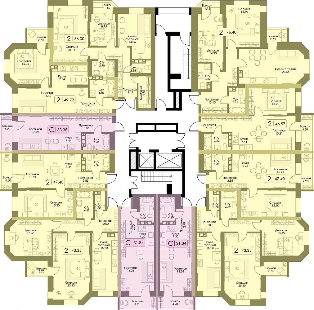 Двухкомнатная квартира №91, Корпус №12, Секция 1