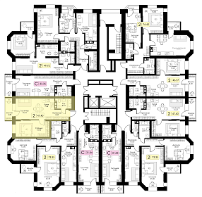 Двухкомнатная квартира №140, Корпус №12, Секция 1
