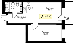 Однокомнатная квартира №58, Корпус №11, Секция 1