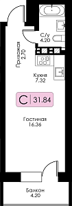 Квартира-студия №138 с предчистовой отделкой, Корпус №11, Секция 1