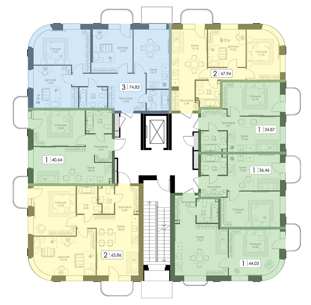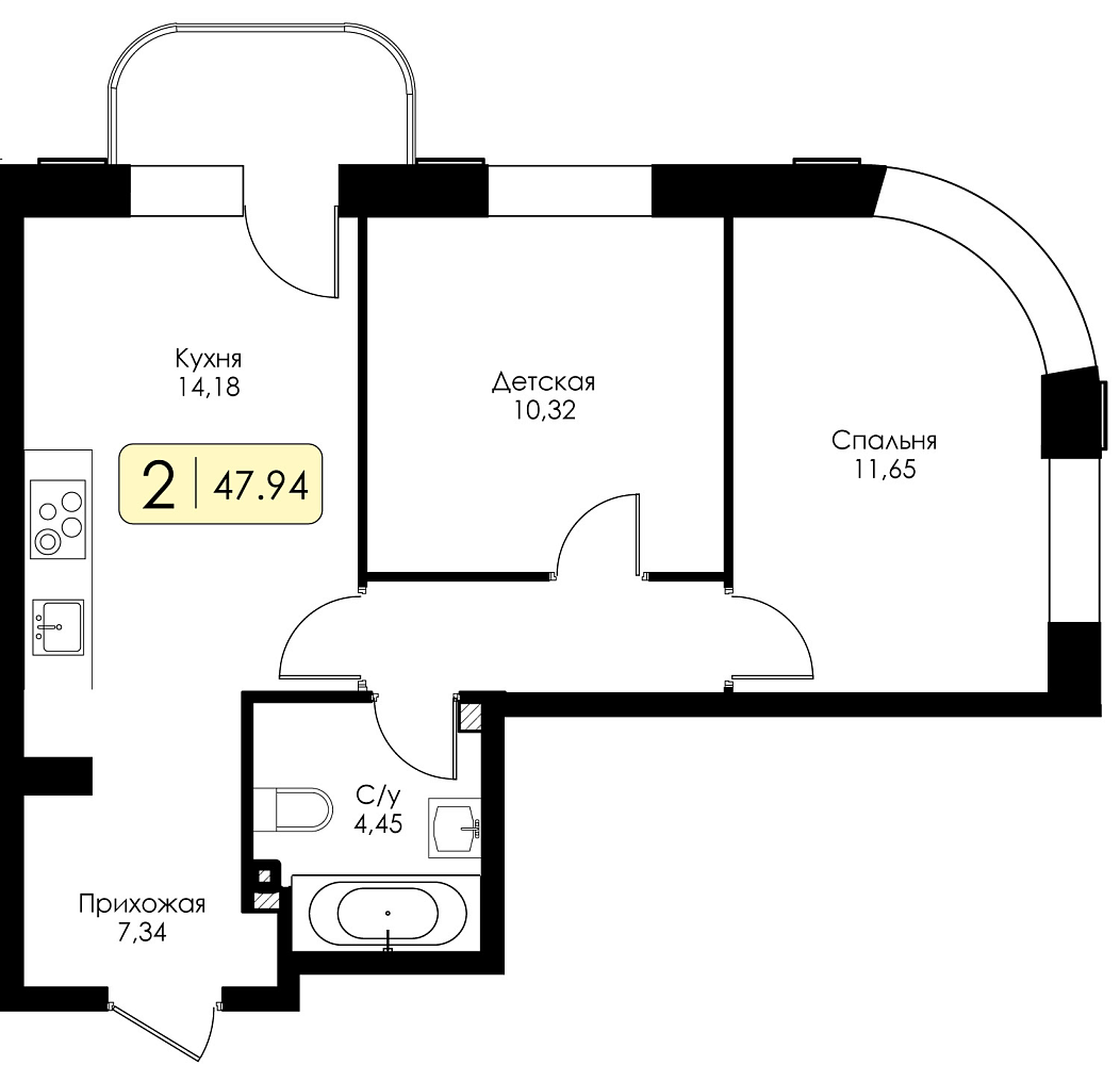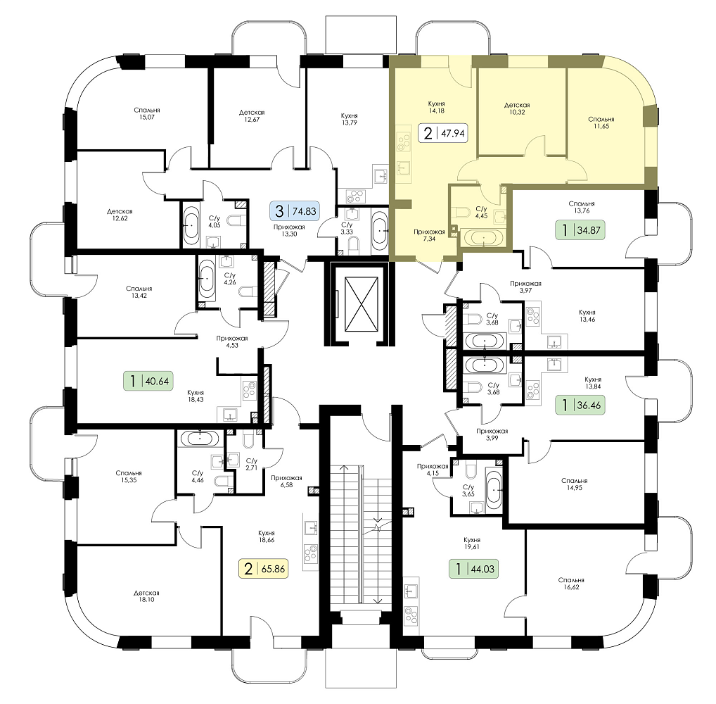 Двухкомнатная квартира №15 с предчистовой отделкой, Корпус № 1.1, Секция 1