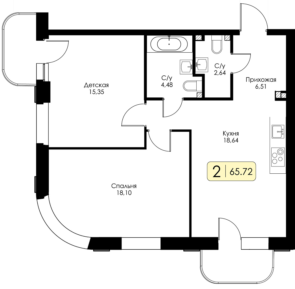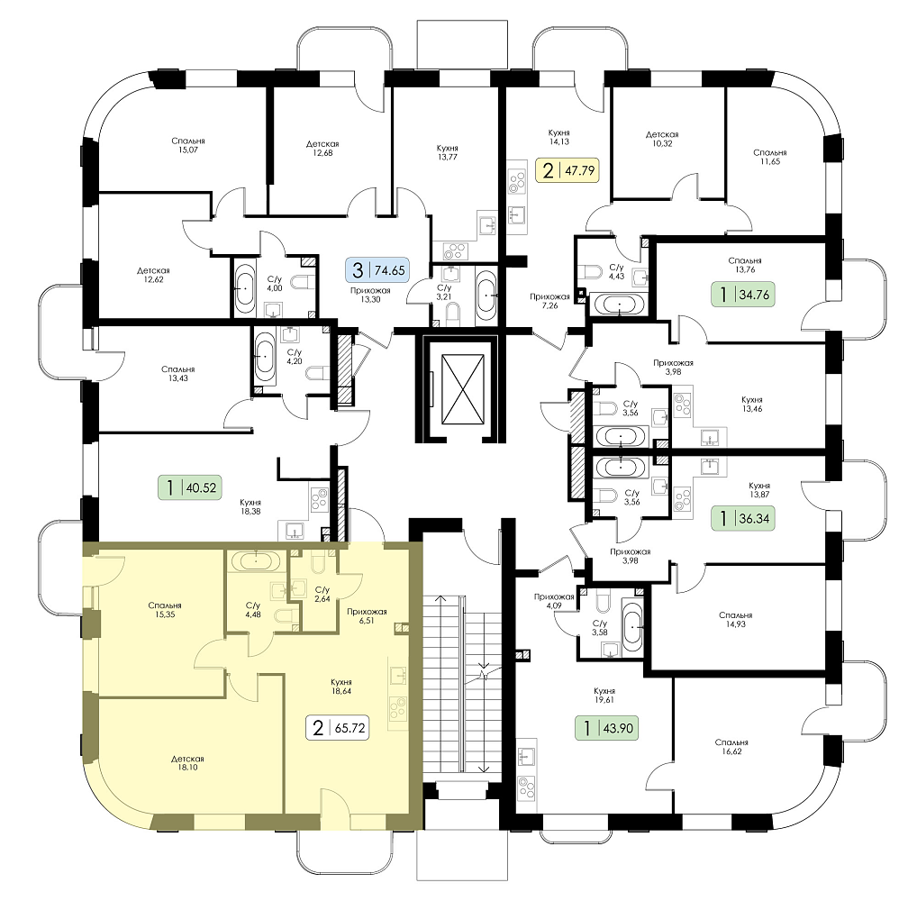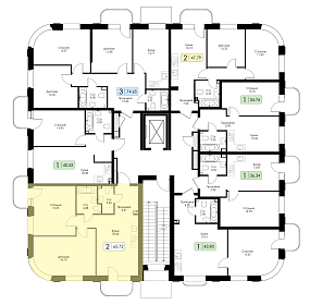 Двухкомнатная квартира №26 с предчистовой отделкой, Корпус № 1.1, Секция 1
