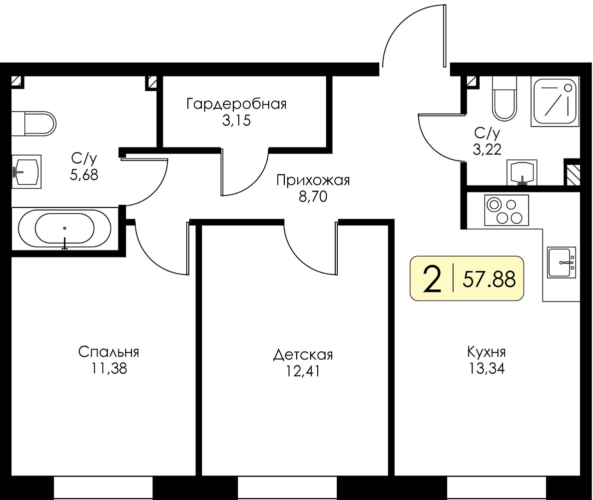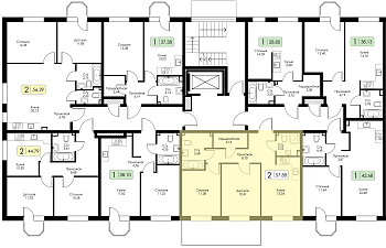 Двухкомнатная квартира №39 с предчистовой отделкой, Корпус № 1.1, Секция 2