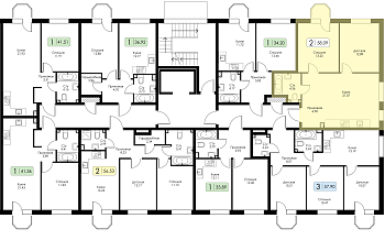 Двухкомнатная квартира №76 с предчистовой отделкой, Корпус № 1.1, Секция 3