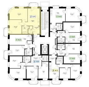 Двухкомнатная квартира №100 с предчистовой отделкой, Корпус № 1.1, Секция 4