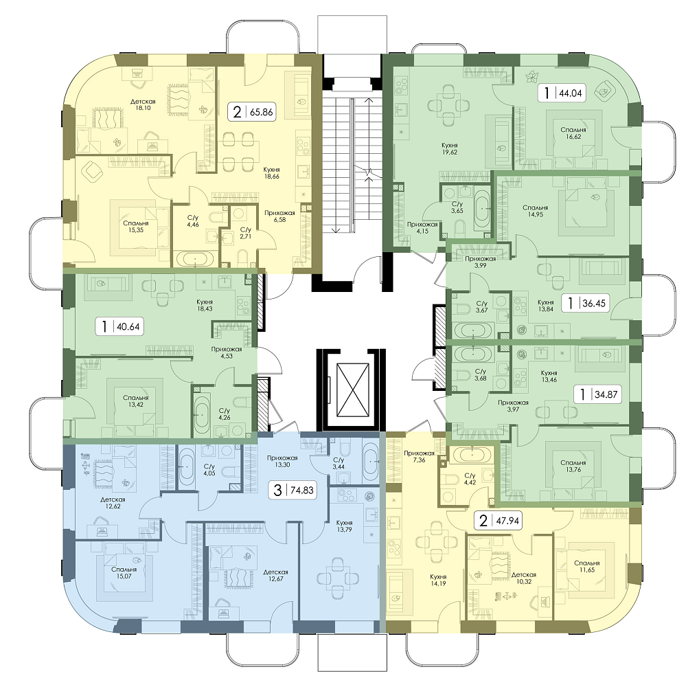 Двухкомнатная квартира №107 с предчистовой отделкой, Корпус № 1.1, Секция 4