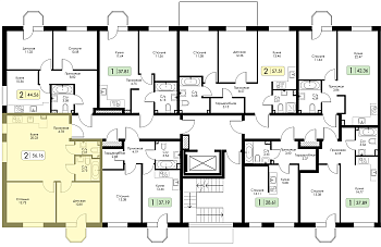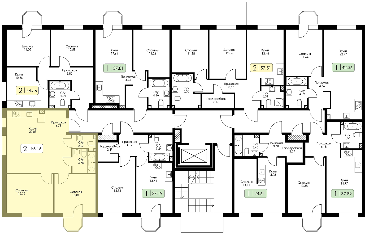 Двухкомнатная квартира №143 с предчистовой отделкой, Корпус № 1.1, Секция 5
