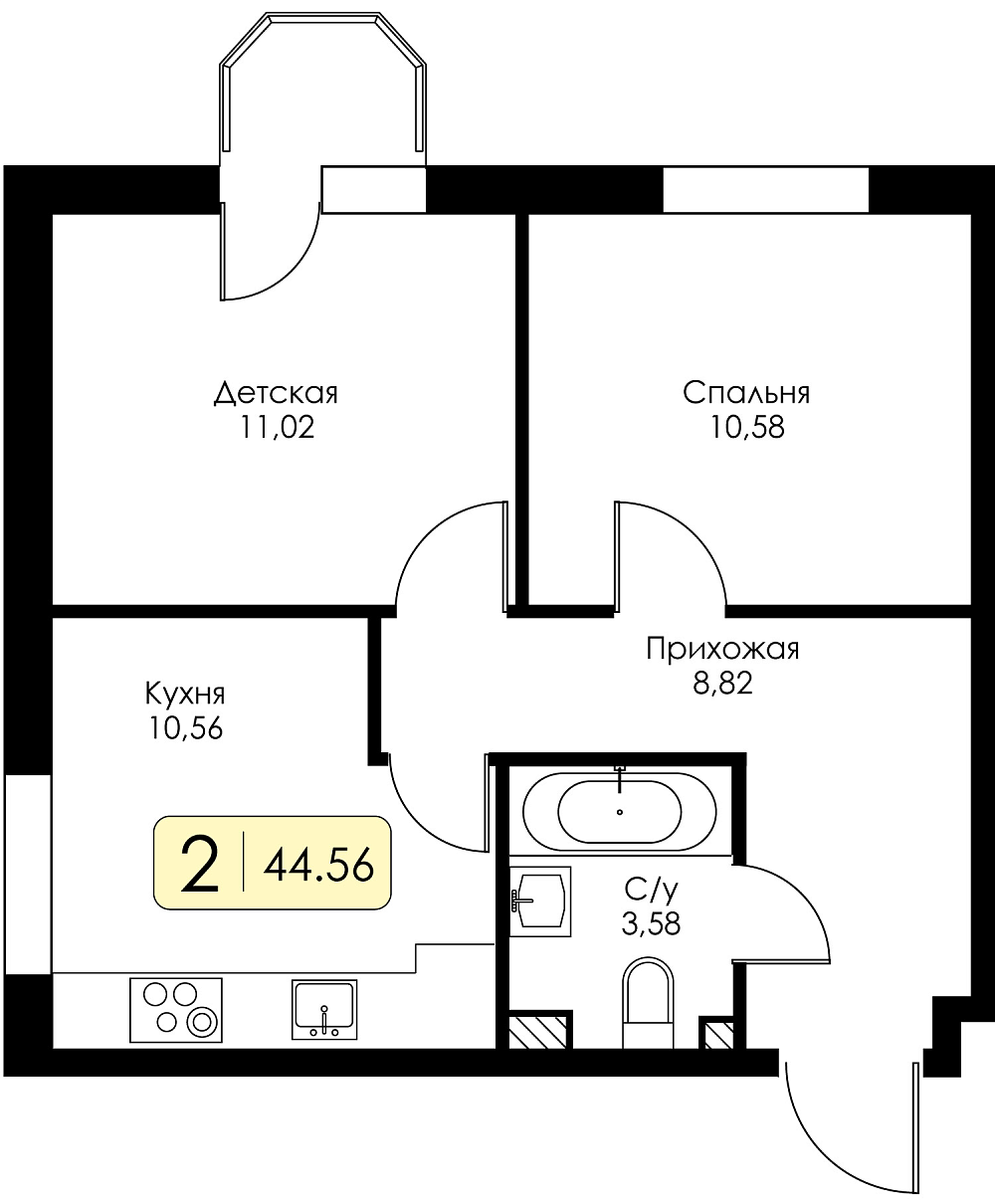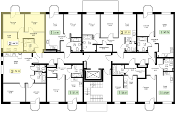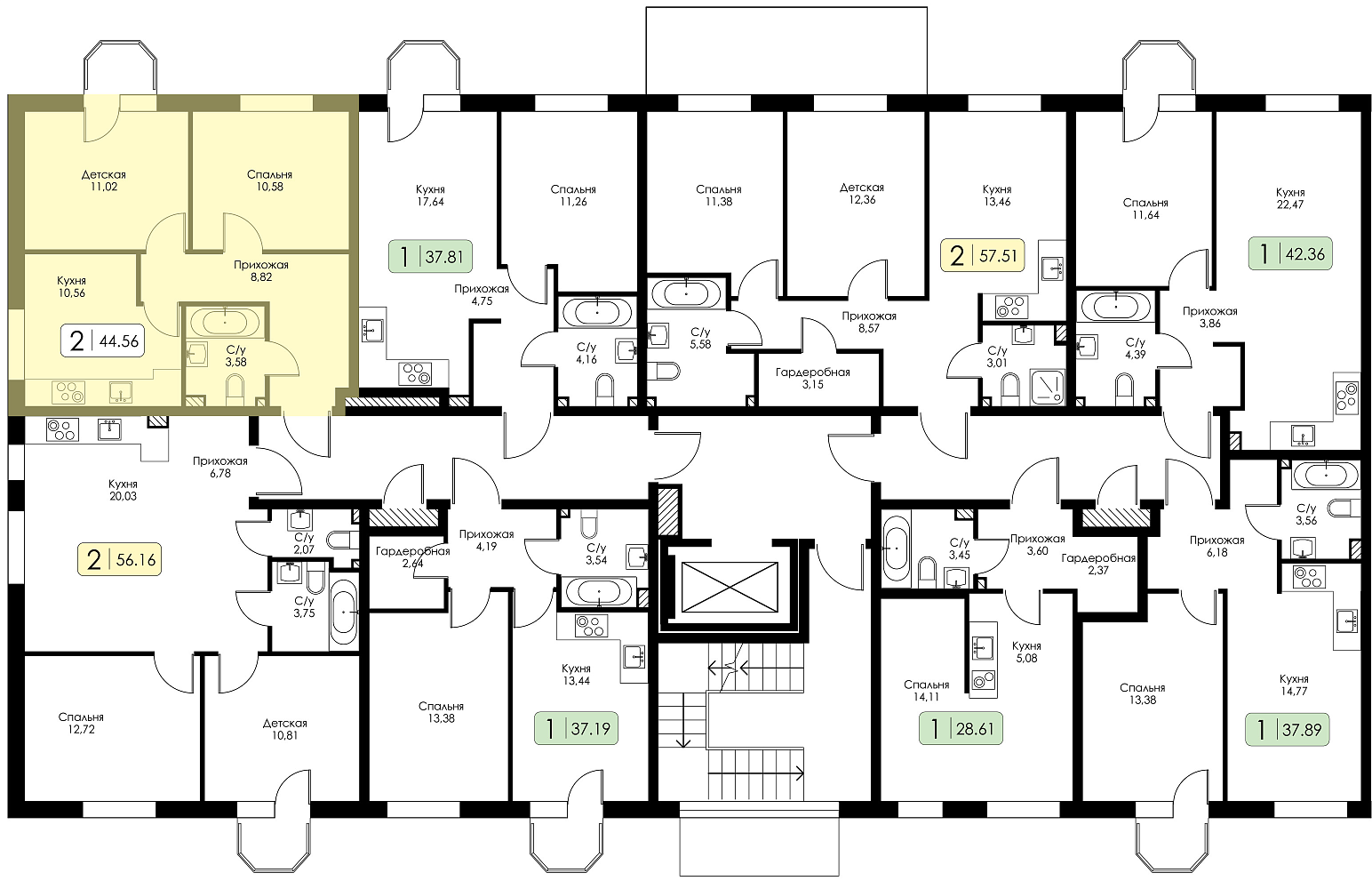 Двухкомнатная квартира №144 с предчистовой отделкой, Корпус № 1.1, Секция 5