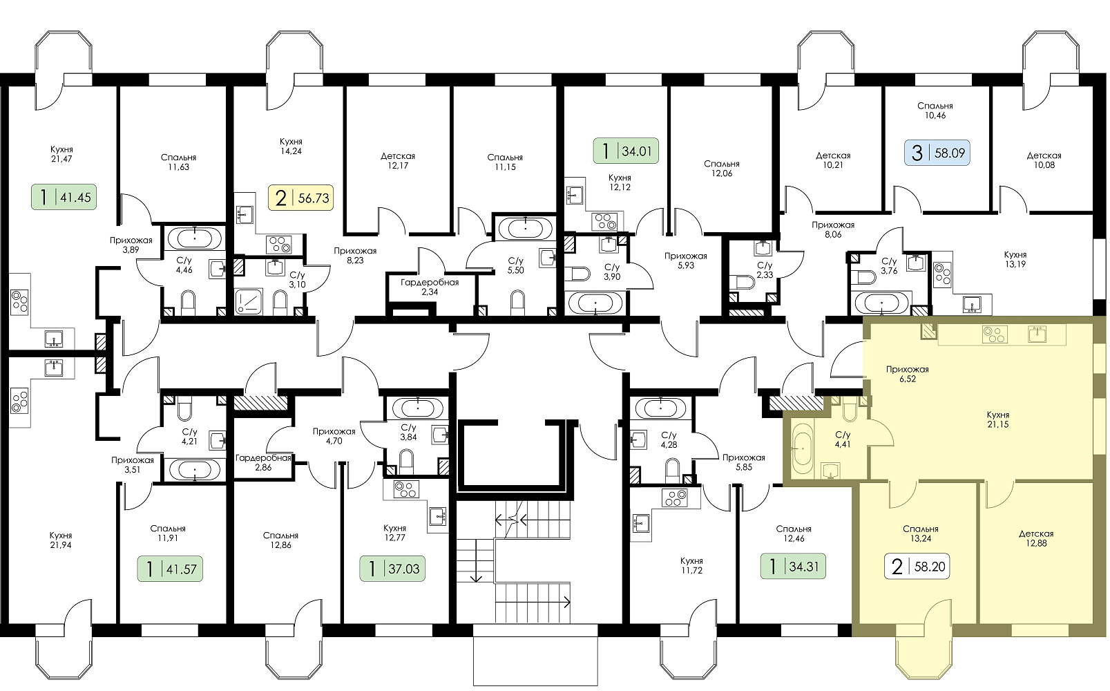 Двухкомнатная квартира №163 с предчистовой отделкой, Корпус № 1.1, Секция 6
