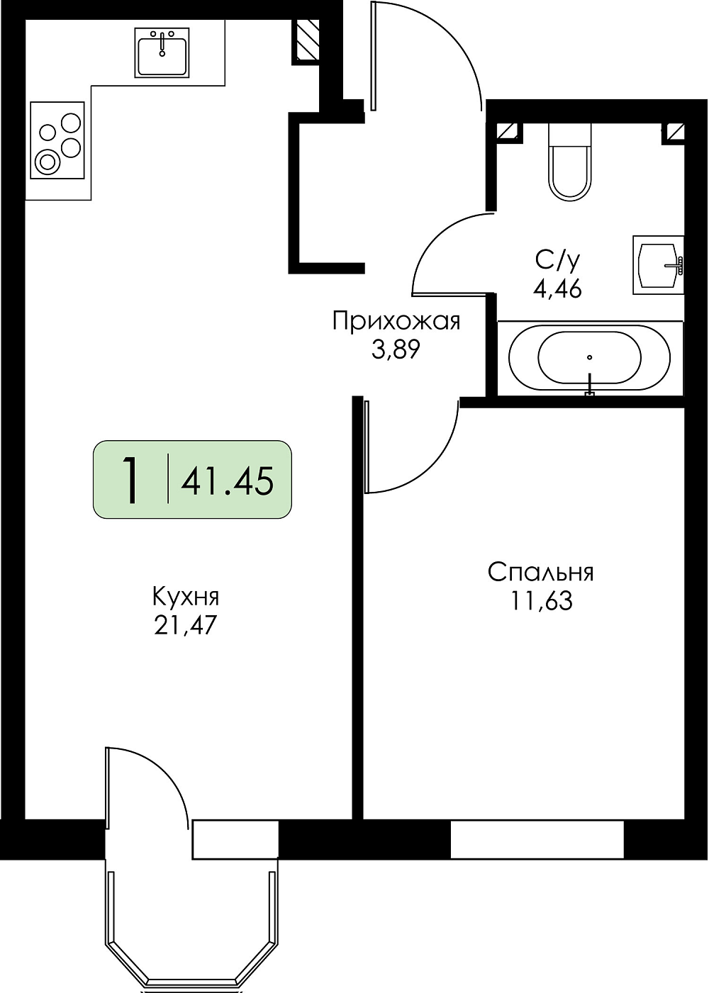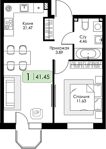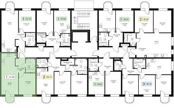 Однокомнатная квартира №72 с предчистовой отделкой, Корпус № 1.1, Секция 3