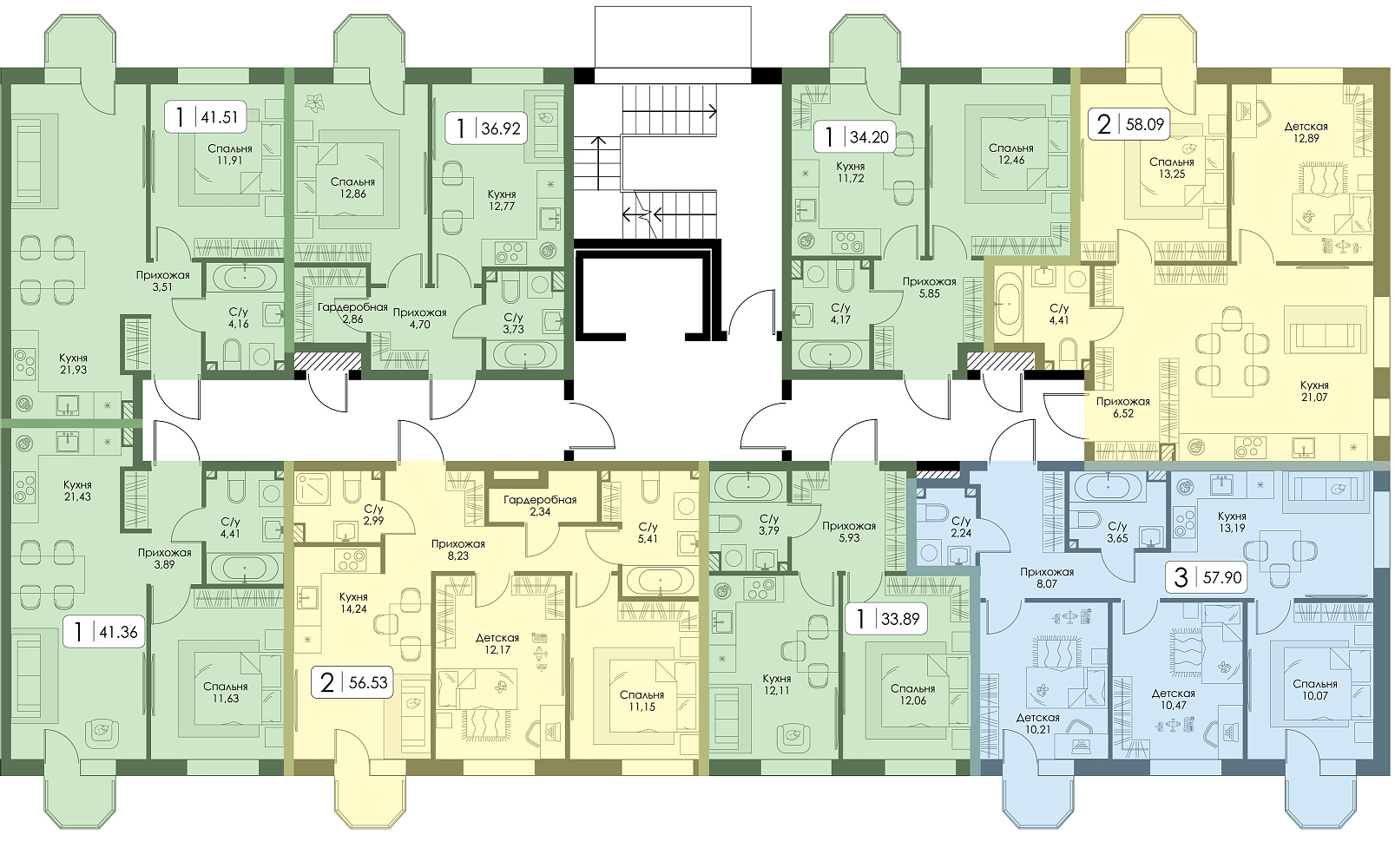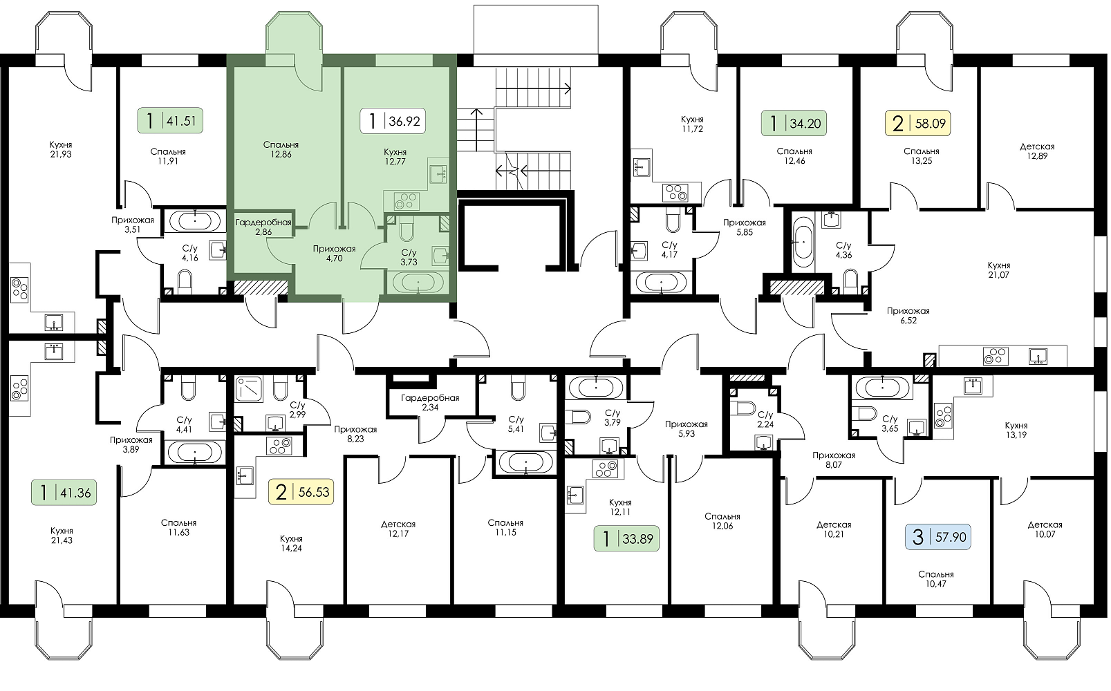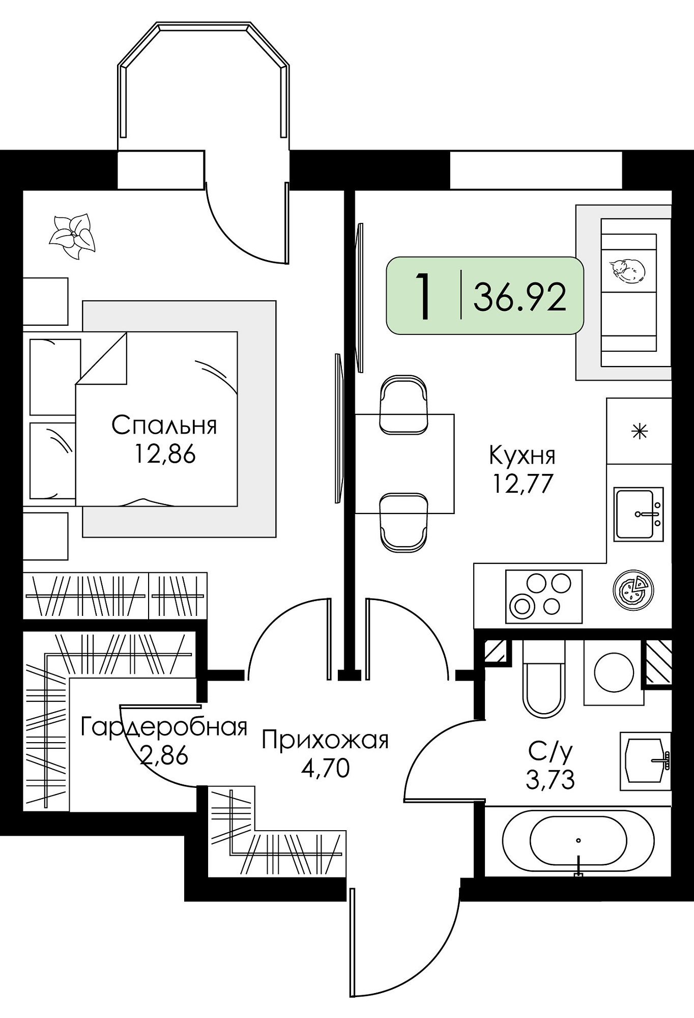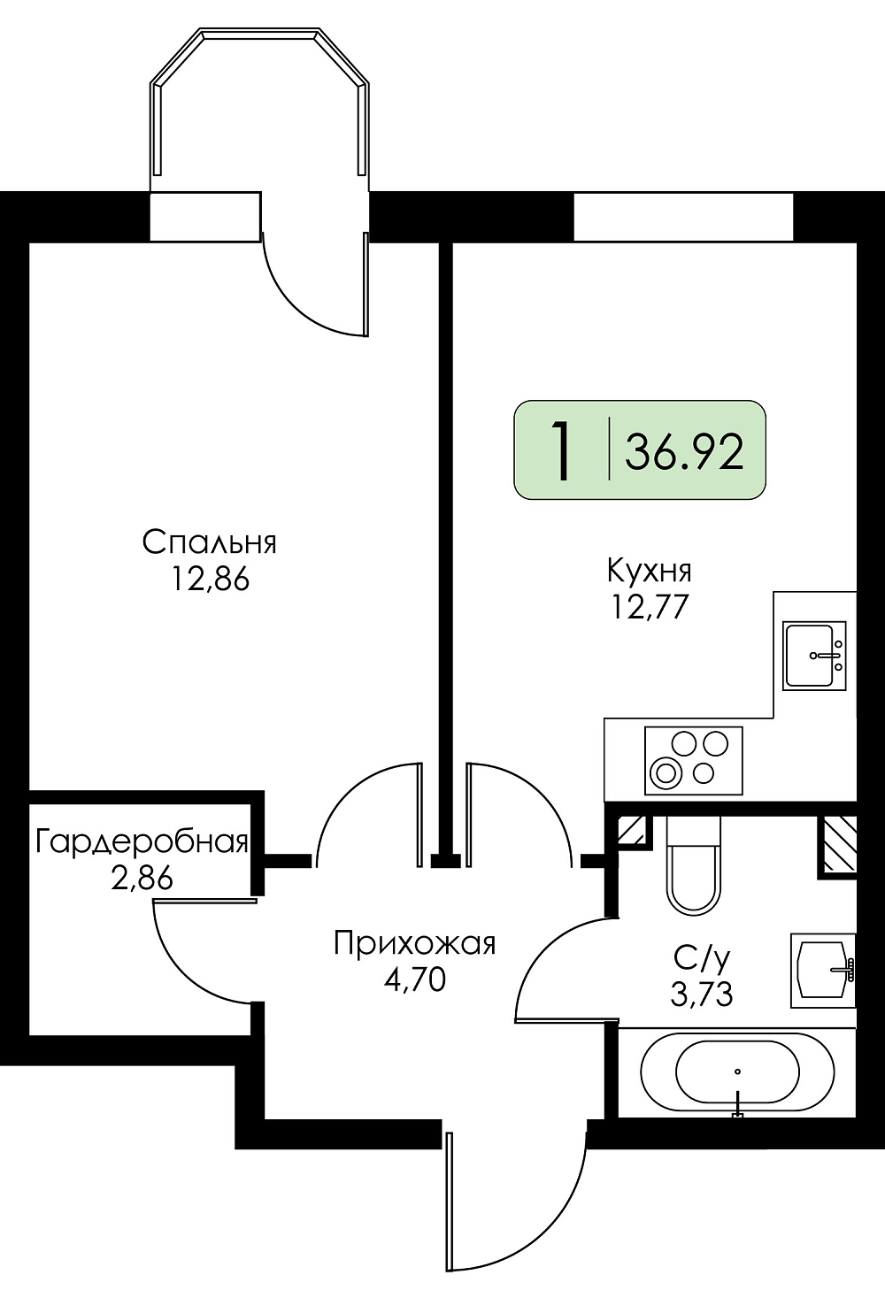 Однокомнатная квартира №82 с предчистовой отделкой, Корпус № 1.1, Секция 3