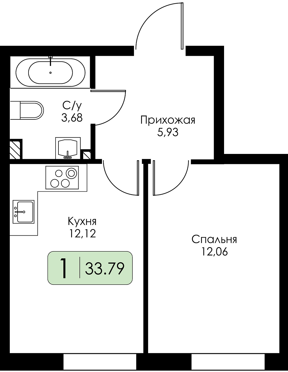 Однокомнатная квартира №86 с предчистовой отделкой, Корпус № 1.1, Секция 3
