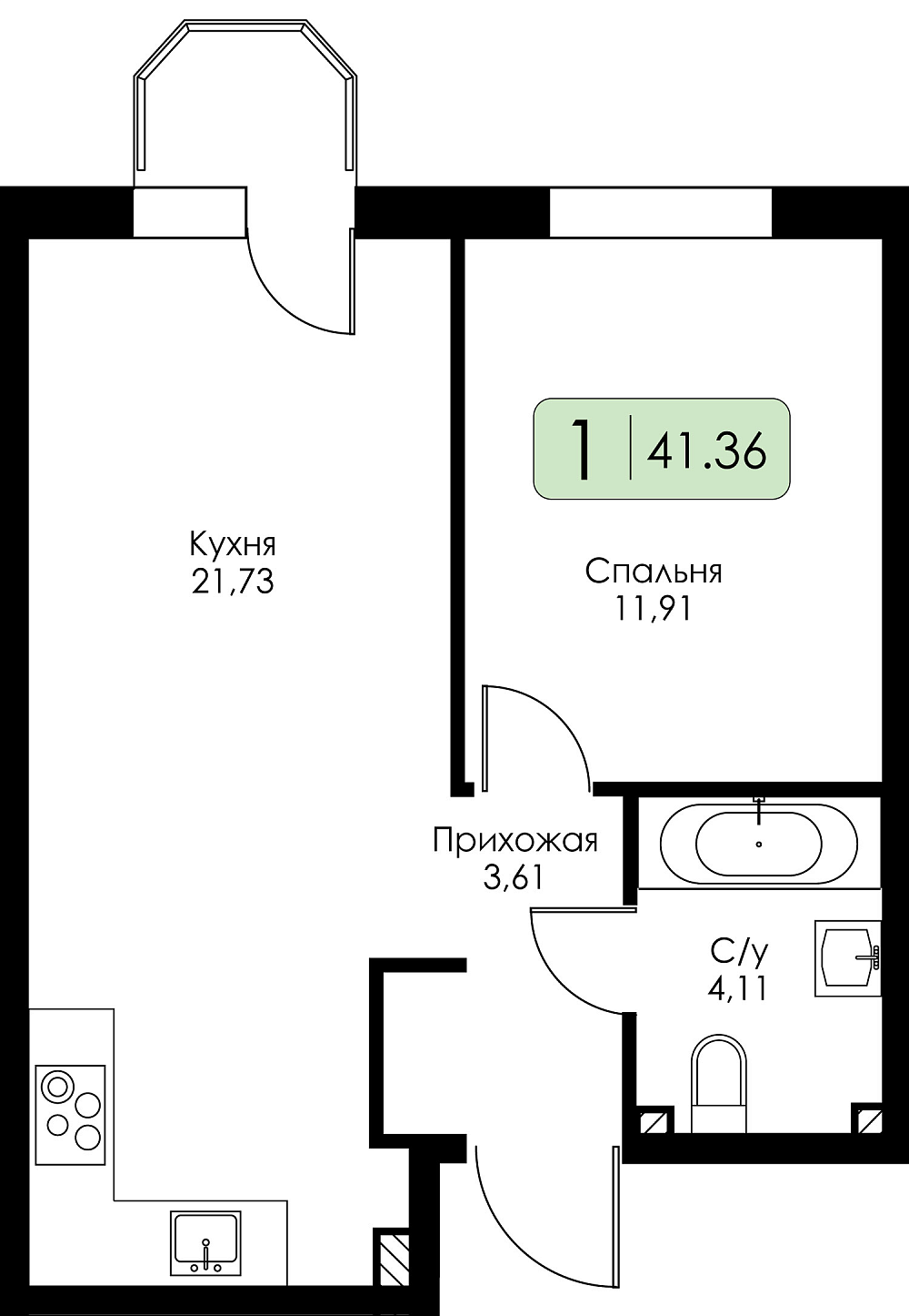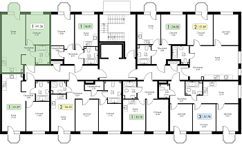 Однокомнатная квартира №89 с предчистовой отделкой, Корпус № 1.1, Секция 3