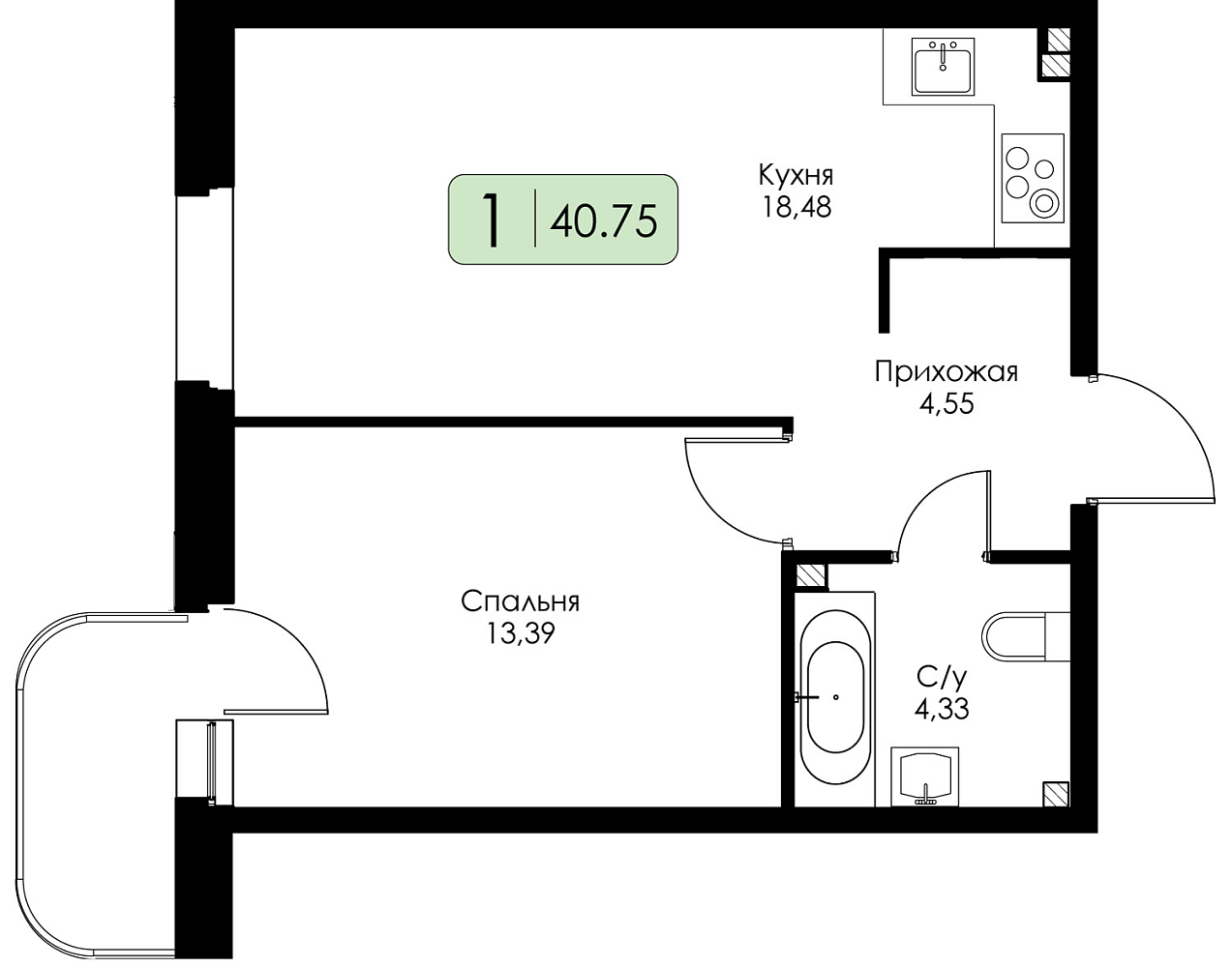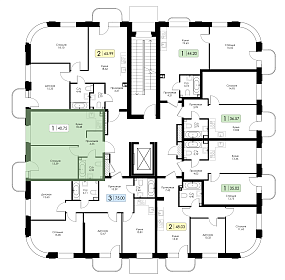 Однокомнатная квартира №99 с предчистовой отделкой, Корпус № 1.1, Секция 4