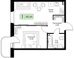 Однокомнатная квартира №106 с предчистовой отделкой, Корпус № 1.1, Секция 4