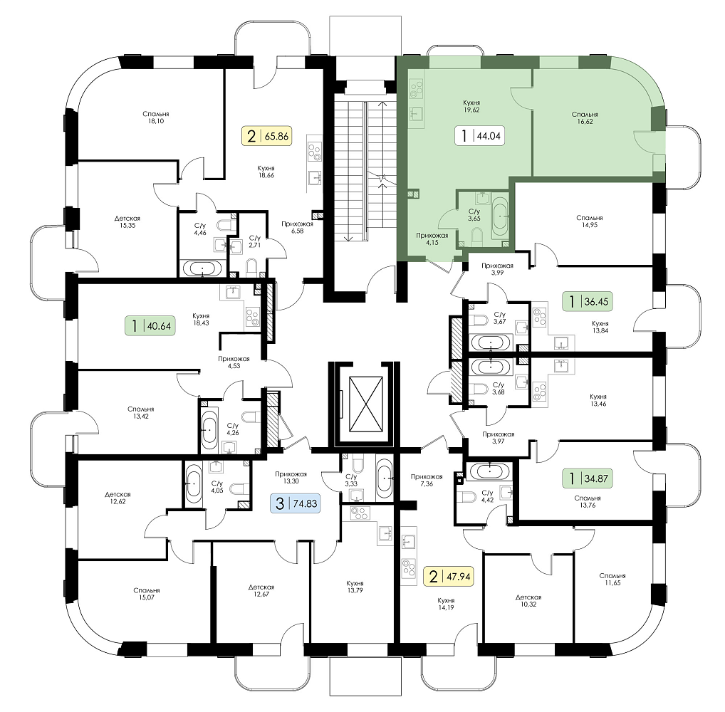 Однокомнатная квартира №108 с предчистовой отделкой, Корпус № 1.1, Секция 4