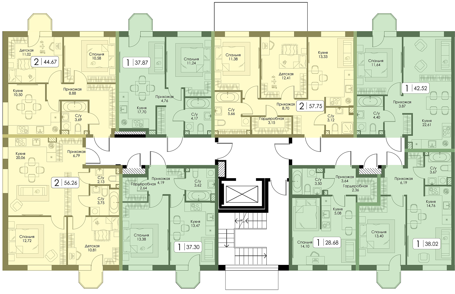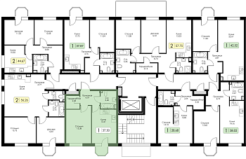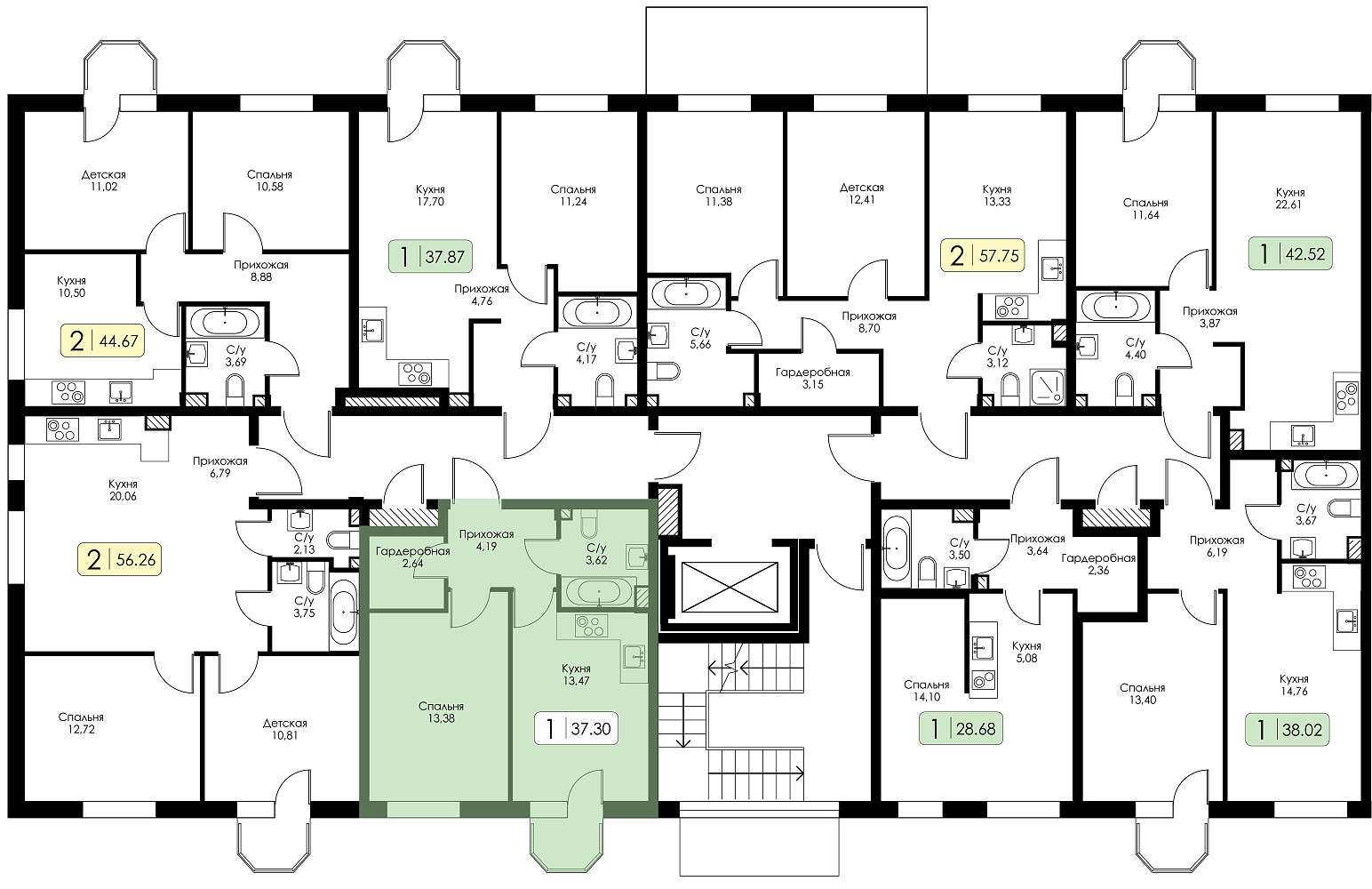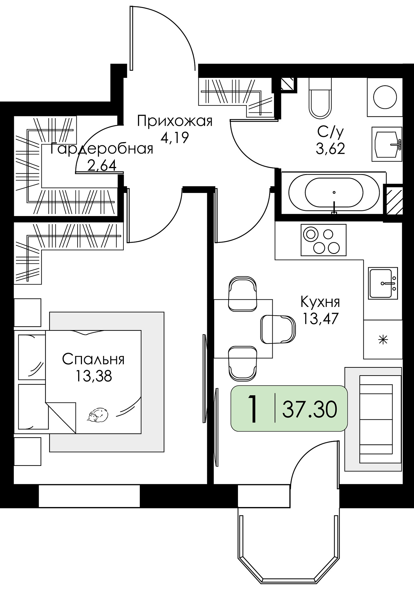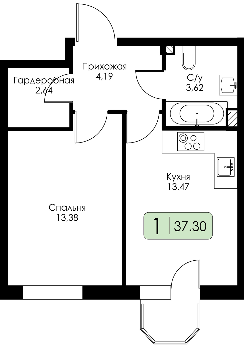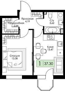 Однокомнатная квартира №134 с предчистовой отделкой, Корпус № 1.1, Секция 5