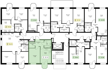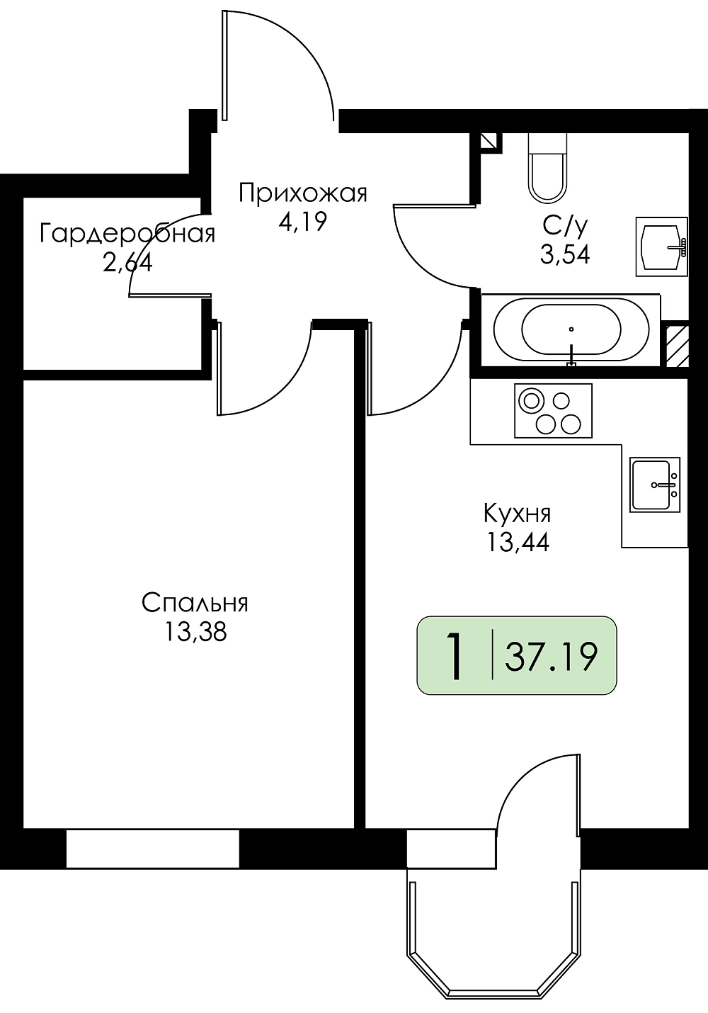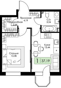 Однокомнатная квартира №142 с предчистовой отделкой, Корпус № 1.1, Секция 5